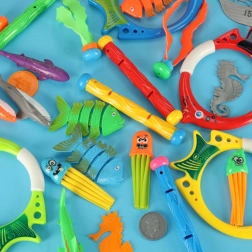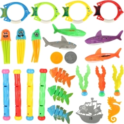 Po vandeniu vaikai gali sutikti žuvytes, jūrų arkliukus ir aštuonkojus, kurie padeda lavinti jų įgūdžius ir motoriką. Rinkinyje taip pat yra nardymo vamzdeliai, leidžiantys vaikams lengvai iškelti žaislus iš vandens. Rinkinys tinka ne tik kasdieniam žaidimui, bet ir jutiminei integracijai bei smulkiajai motorikai lavinti.