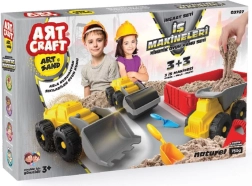 - Rinkinyje yra įvairių statybinių transporto priemonių ir kinetinis smėlis.