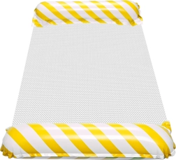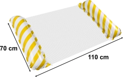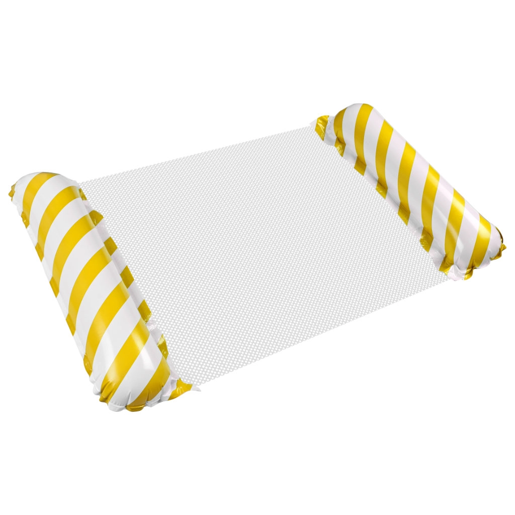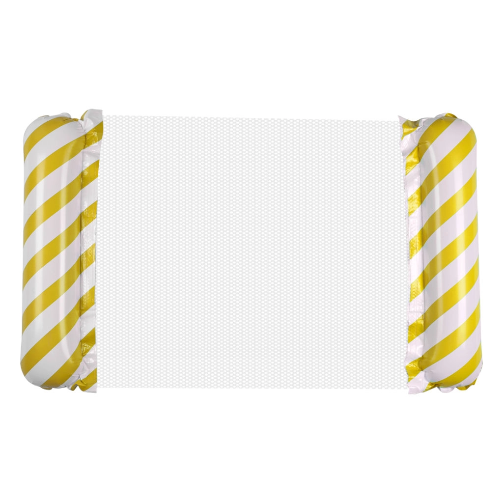 Mėgaukitės poilsiu paplūdimyje ar baseine su šiuo geltonai baltu čiužiniu. Pripučiamų kraštų konstrukcija užtikrina pusiausvyrą, o tvirta tinklinė medžiaga išlaiko jūsų kūną ant vandens. Sukurtas taip, kad būtų patogu ir gulėti, ir sėdėti ramioje vandens aplinkoje.