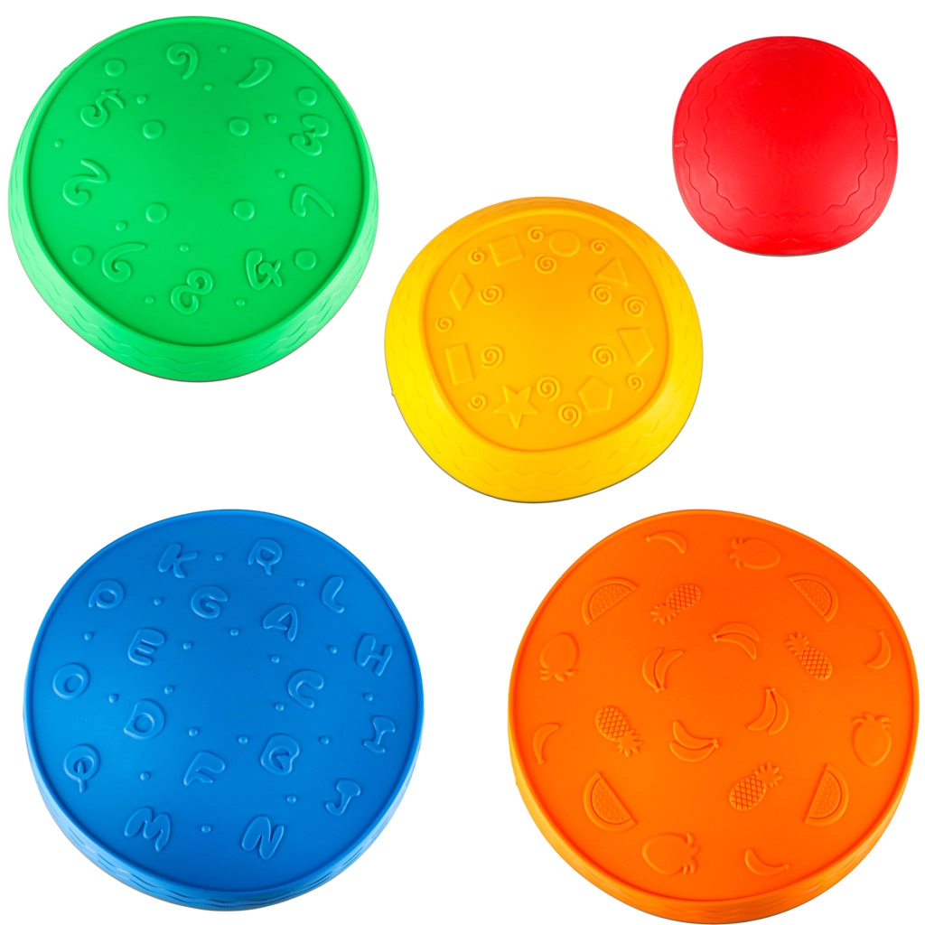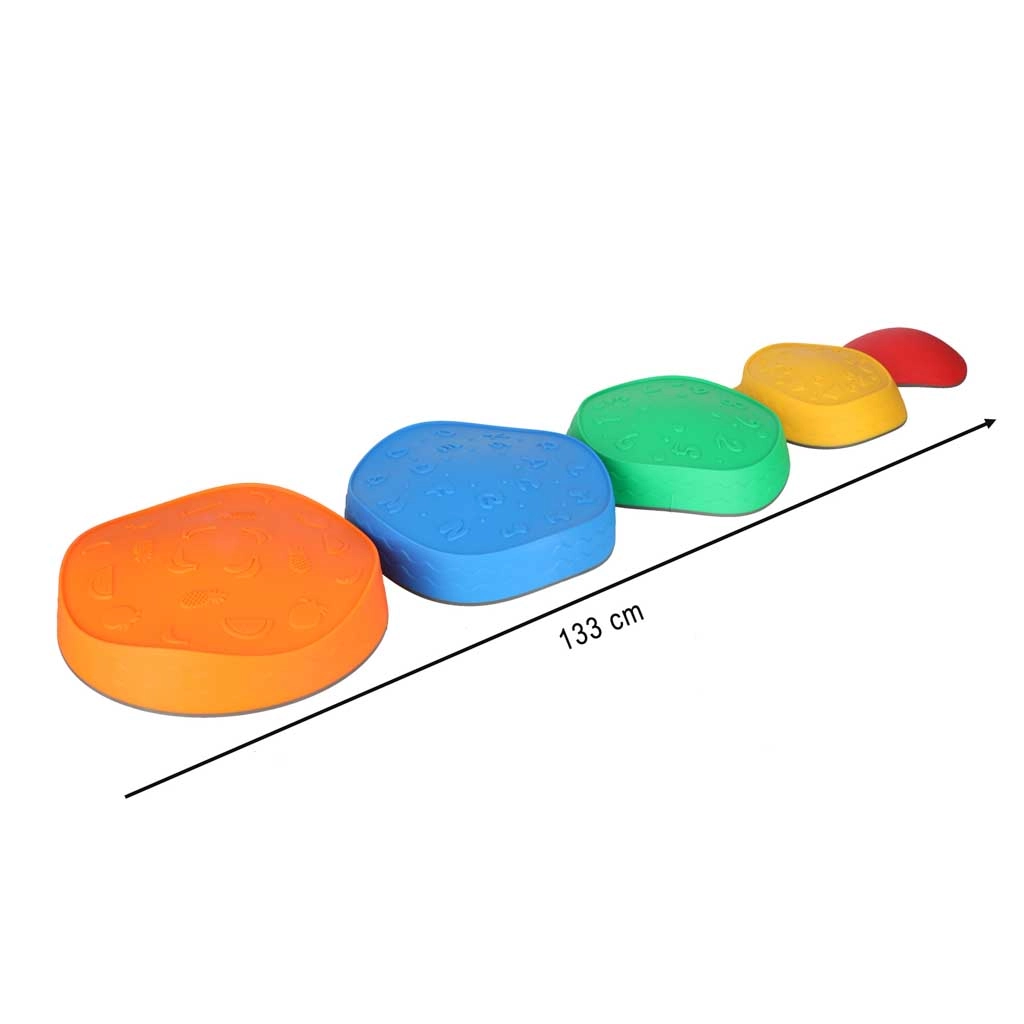Dėl tvirtos konstrukcijos ir neslystančių pagrindų akmenys išlieka stabilūs ant įvairių grindų. Atsparus poliuretanas malonus liesti ir lengvai valomas. Spalvingi motyvai (skaičiai, raidės, formos, vaisiai, raštai) skatina mokymąsi žaidžiant ir lavina smulkiąją bei stambiąją motoriką.