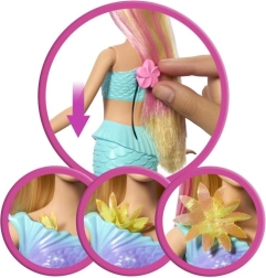 Atrakinkite žaidimo magiją su BARBĖ undinėle, kuri pajudinus svirtelę nugarėlėje pademonstruoja žavingą žiedų skleidimosi efektą nuo liemenės iki uodegos pelekų. Dėl vaivorykštinių žiedų, ombré pelekų ir perlų lankelio ilguose šviesiuose plaukuose su rožiniais sruogomis ji idealiai tinka fantazijų žaidimams tiek krante, tiek vandenyje. Puiki dovana vaikams nuo 3 metų.