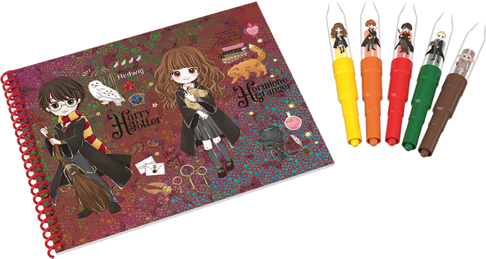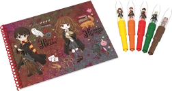 Pučiamųjų flomasterių rinkinys su Harry Potter motyvais suteikia ir pramogą, ir kūrybinę išraišką. Vaikai, paprastai pūsdami į flomasterius, gali kurti spalvingus purškimo efektus. Be flomasterių, rinkinyje yra ir užrašų knygelė, pilna iš anksto atspausdintų Harry Potter motyvų, kuriuos galima spalvinti arba papildyti savo piešiniais.
