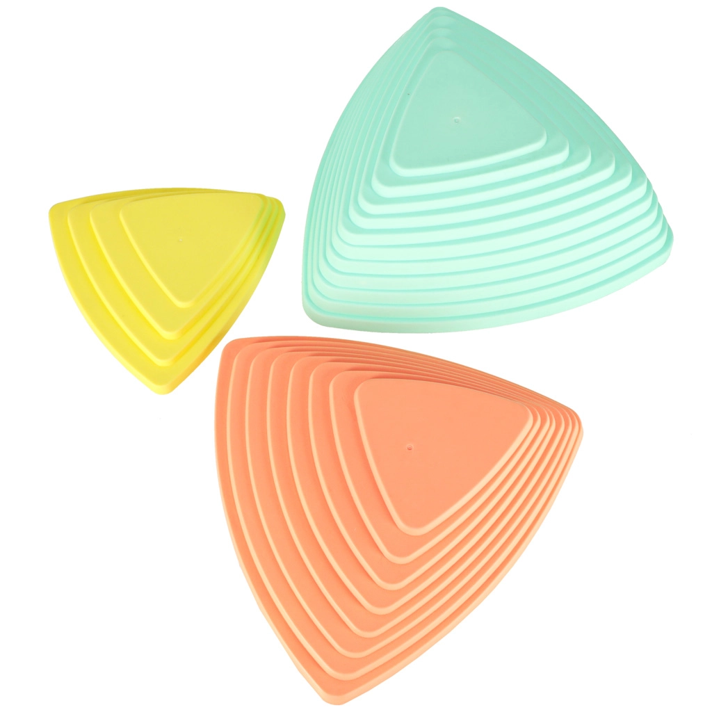 Rinkinyje yra viskas, ko reikia dinaminei ir spalvingai jutiminei trasai sukurti. Vaikai patys gali spręsti, kaip atrodys jų trasa, taip stiprindami kontrolės jausmą ir skatindami atradimus. Žaidimas su šiais akmenimis gali būti įvairus – nuo paprastos kliūčių trasos iki įtraukiančio žaidimo „grindys yra lava“.
