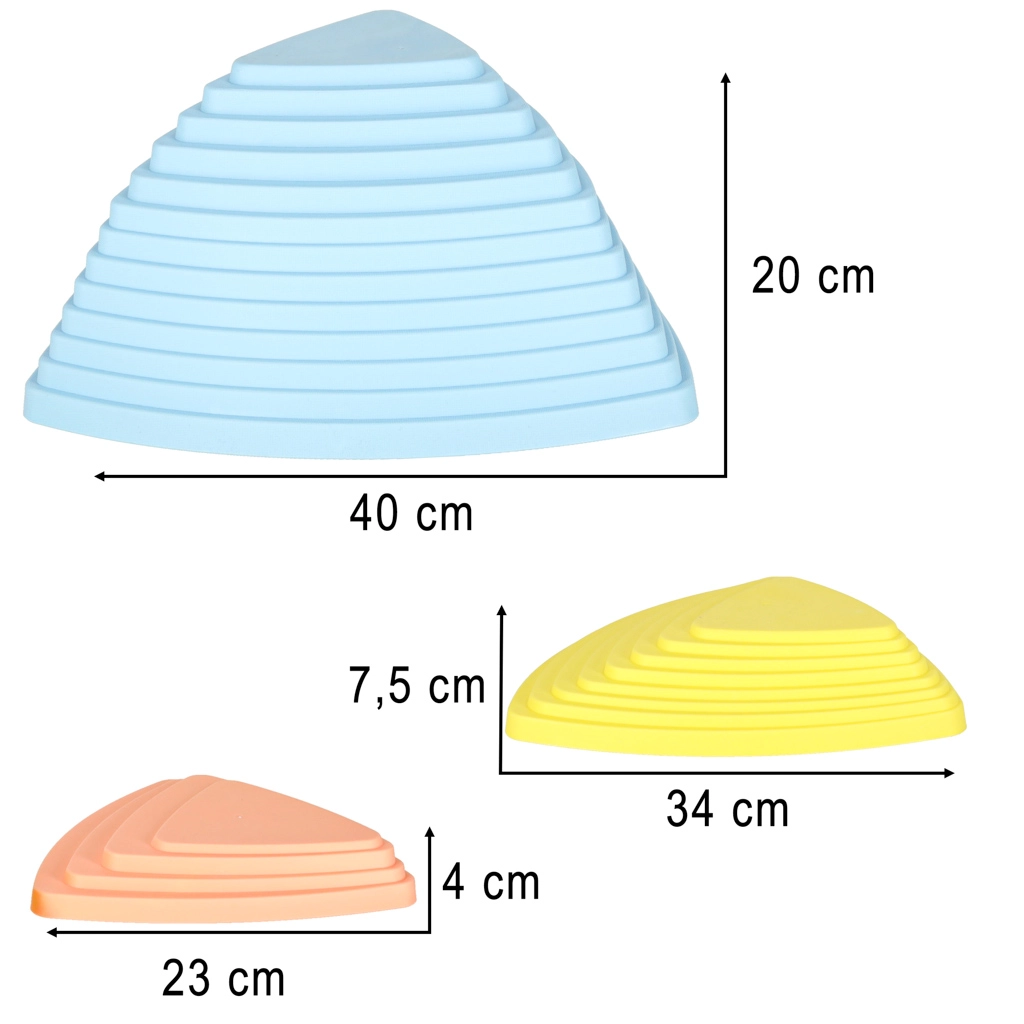 Pusiausvyros akmenys suteikia saugią ir lanksčią erdvę žaisti tiek namuose, tiek darželiuose ar terapeutų kabinetuose. Vadovaujantis Montessori metodu, šie skirtingo aukščio geometriniai akmenys moko vaikus planuoti judesius, išlaikyti pusiausvyrą ir sutelkti dėmesį.