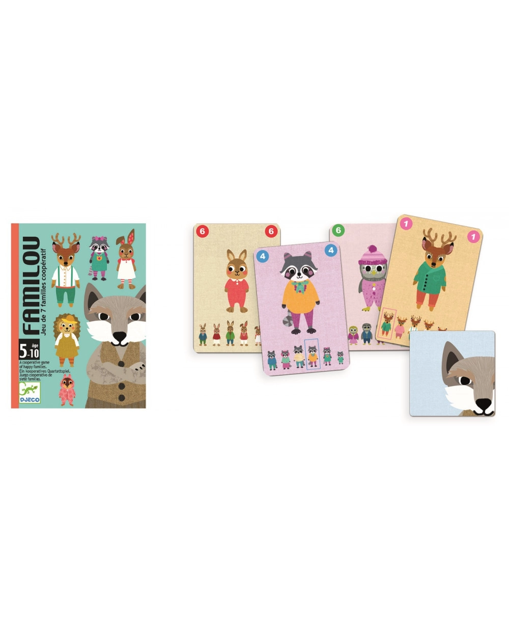 Patirkite nepamirštamas akimirkas su kortų žaidimu Familou iš žinomo prekės ženklo Djeco. Šis žaidimas sukurtas taip, kad skatintų žaidėjų bendradarbiavimą, nes tikslas – rasti ir surinkti visas gyvūnų šeimas anksčiau, nei pasirodys vilkai. Su paprastomis taisyklėmis ir gražiai iliustruotomis kortelėmis tiek vaikai, tiek suaugusieji greitai įsitrauks į žaidimą.