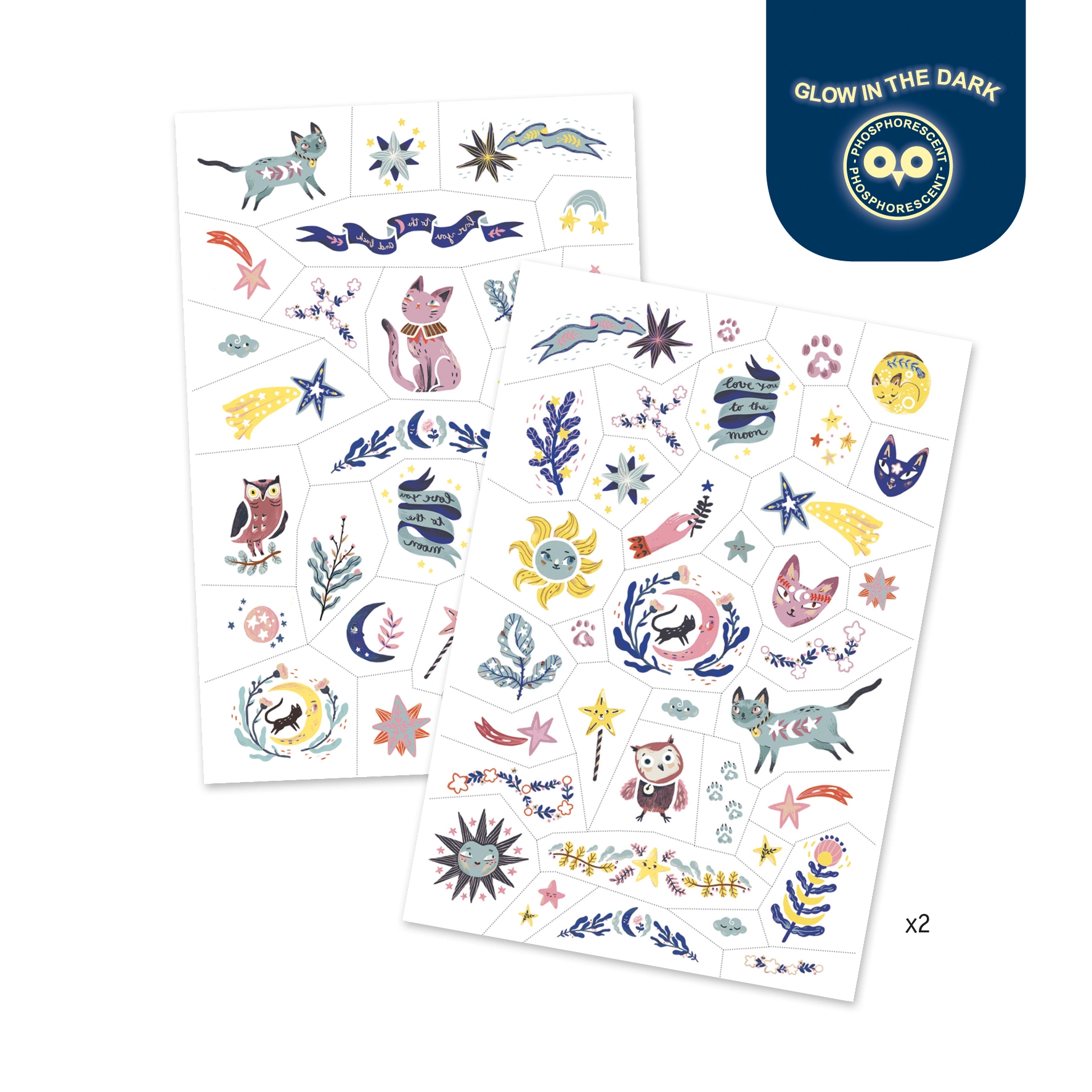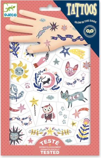 Laikinosios tatuiruotės „Laimingi sapnai“ nuo Djeco – žavingas žėrinčių tatuiruočių rinkinys, kuris pagyvins bet kokį vaikų užsiėmimą ir pavers jį nepakartojama patirtimi.