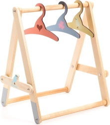 Ši graži medinė kabyklėlė yra ne tik funkcionali, bet ir vizualiai patraukli, todėl puikiai tiks kiekvieno vaiko kambariui. Rinkinyje yra kelios pakabos, kurios padeda išlaikyti lėlyčių drabužius tvarkingus ir paruoštus bet kokiai progai. Su šiuo rinkiniu vaikai lavins organizavimo įgūdžius ir rūpinimąsi savo mylimų lėlyčių apranga.