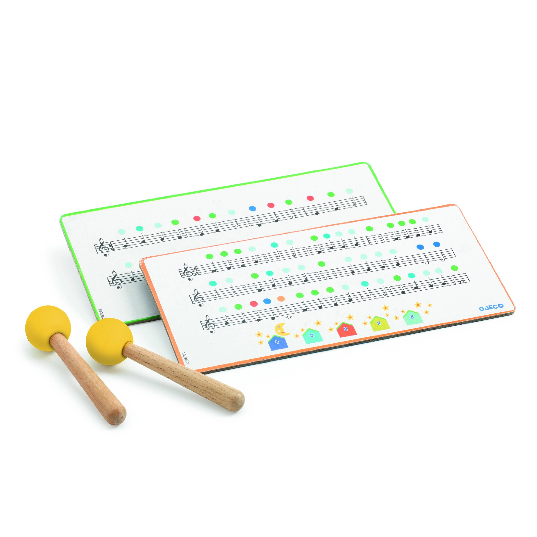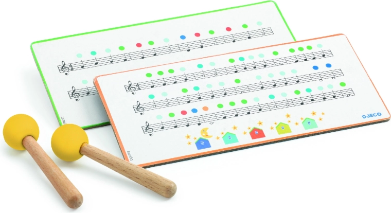 Sunumeruoti liežuvėliai ir pridėtos lazdelės leidžia vaikams iš karto groti malonias melodijas be ankstesnės patirties.