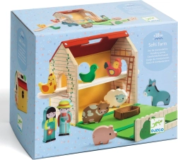 Ši gražiai pagaminta ferma lavina vaikų vaizduotę, smulkiąją motoriką ir pasakojimo įgūdžius. Atidarius atsiskleidžia vištidė ir tvartas, lauke yra pieva visiems gyvūnams. Lentelę vištidėje galima ištraukti ir paversti čiuožykla, kuria figūrėlės gali linksmai čiuožti.