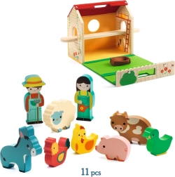 Atraskite žavingą Djeco medinę fermą, idealiai tinkančią mažyliams nuo 18 mėnesių. Šis nešiojamas rinkinys derina medį ir tvirtą veltinį, kad būtų lengva, bet stabili konstrukcija. Vaikai mėgausis atsidarančia ferma su vištide ir tvartu, įskaitant ištraukiamą čiuožyklą ir 9 mielas figūrėles. Po žaidimo viską lengva sudėti tiesiai į fermą, o dėl rankenos ją galima pasiimti visur su savimi.