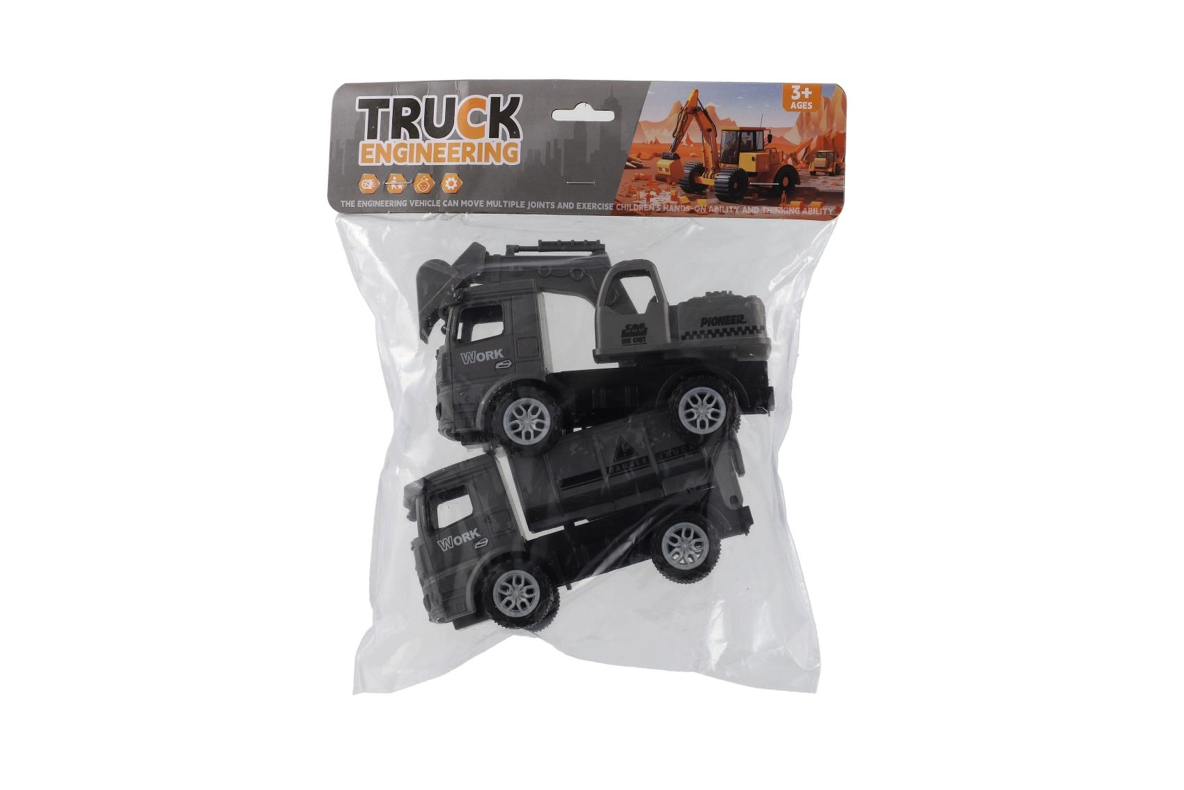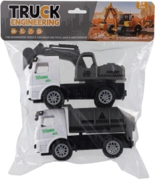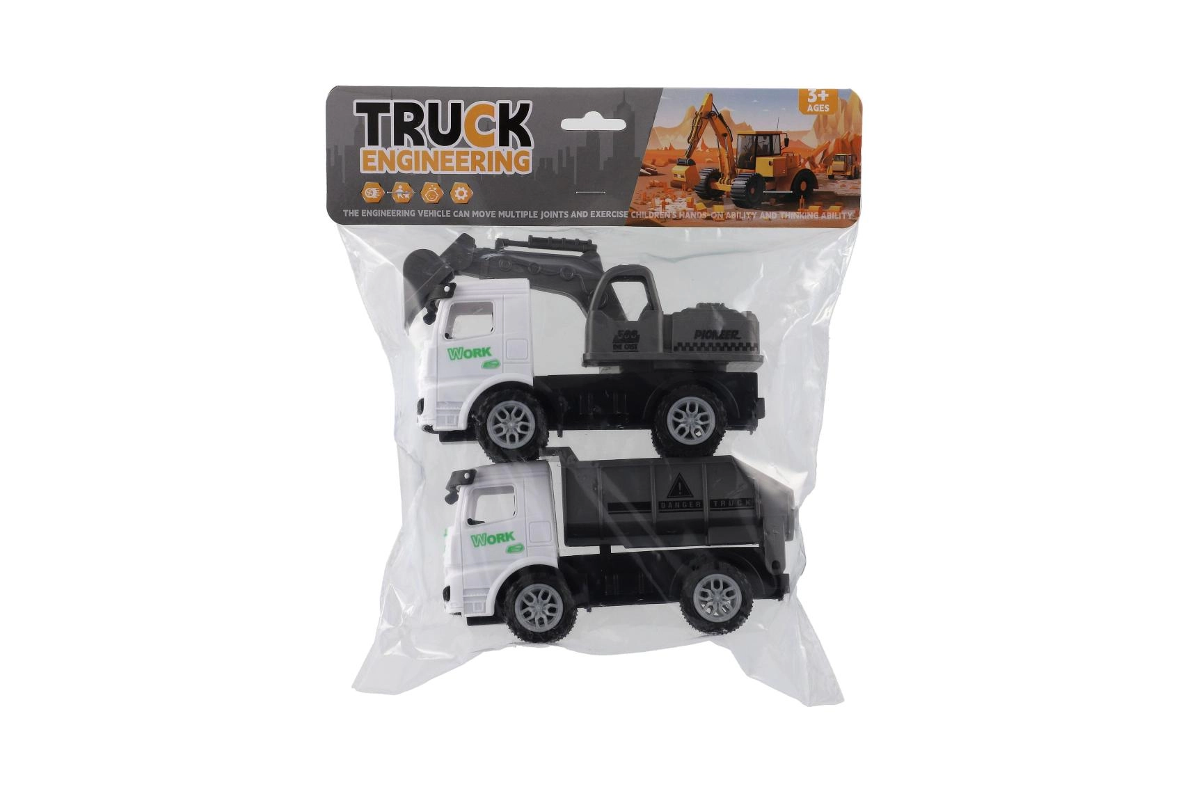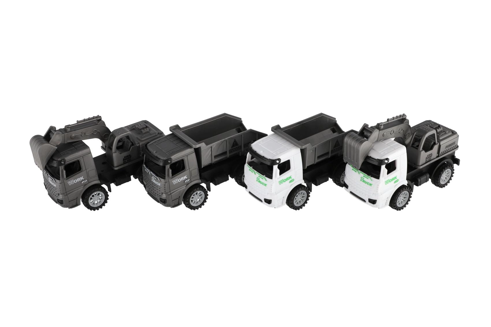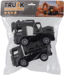 Šis puikus statybinių automobiliukų rinkinys pradžiugins kiekvieną mažąjį statytoją. Jame yra 2 plastikinės transporto priemonės, kurių ilgis 15 cm, su inercine pavara – pakanka pastumti ir paleisti, ir automobiliai nuriedės pirmyn.