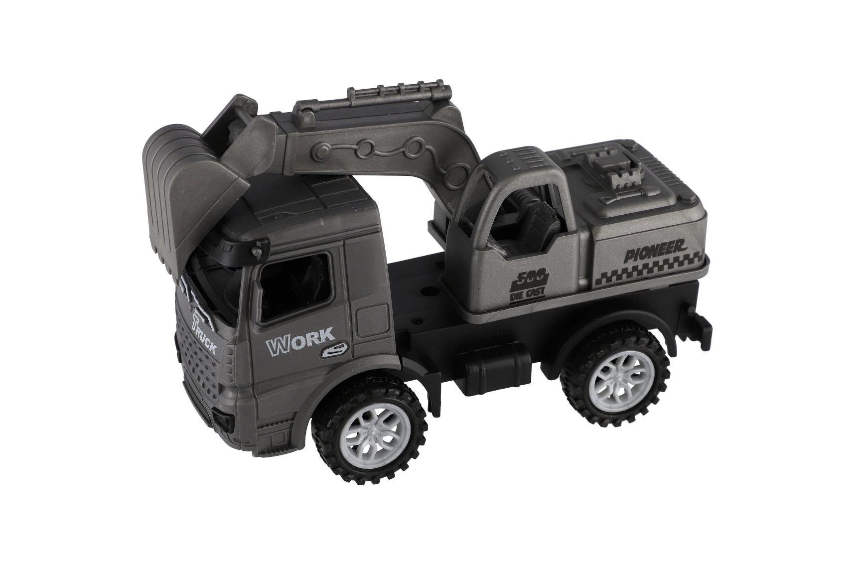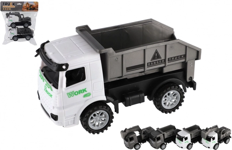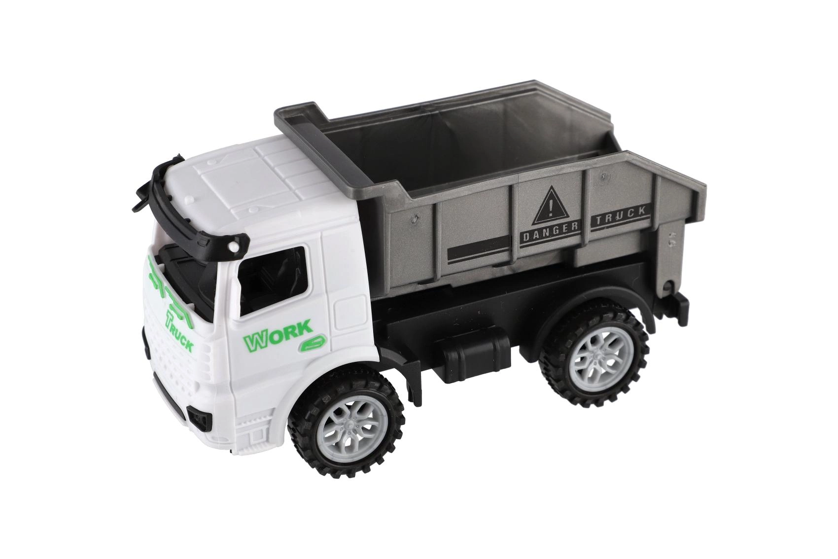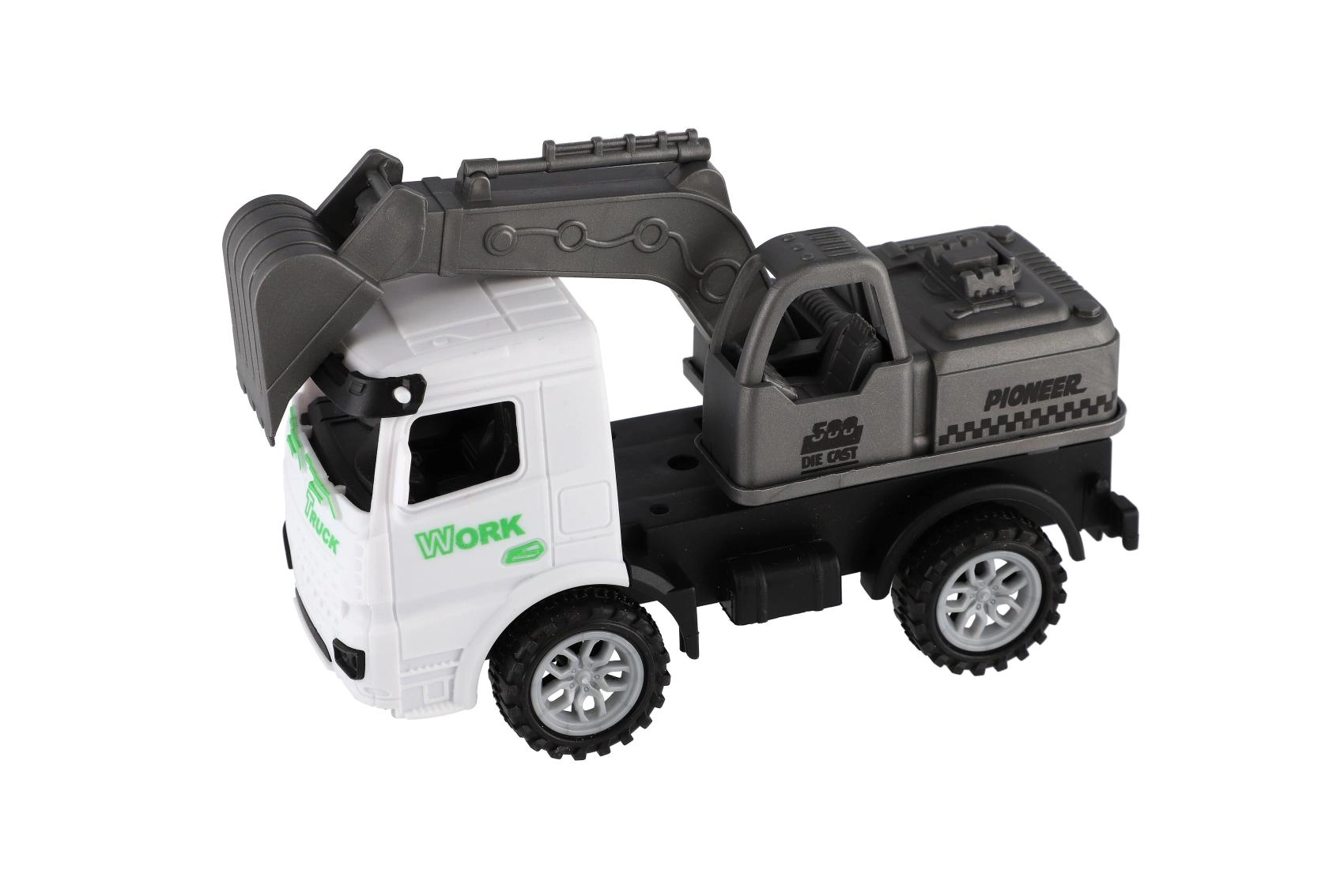 Šis puikus statybinių automobiliukų rinkinys pradžiugins kiekvieną mažąjį statytoją. Jame yra 2 plastikinės transporto priemonės, kurių ilgis 15 cm, su inercine pavara – pakanka pastumti ir paleisti, ir automobiliai nuriedės pirmyn.