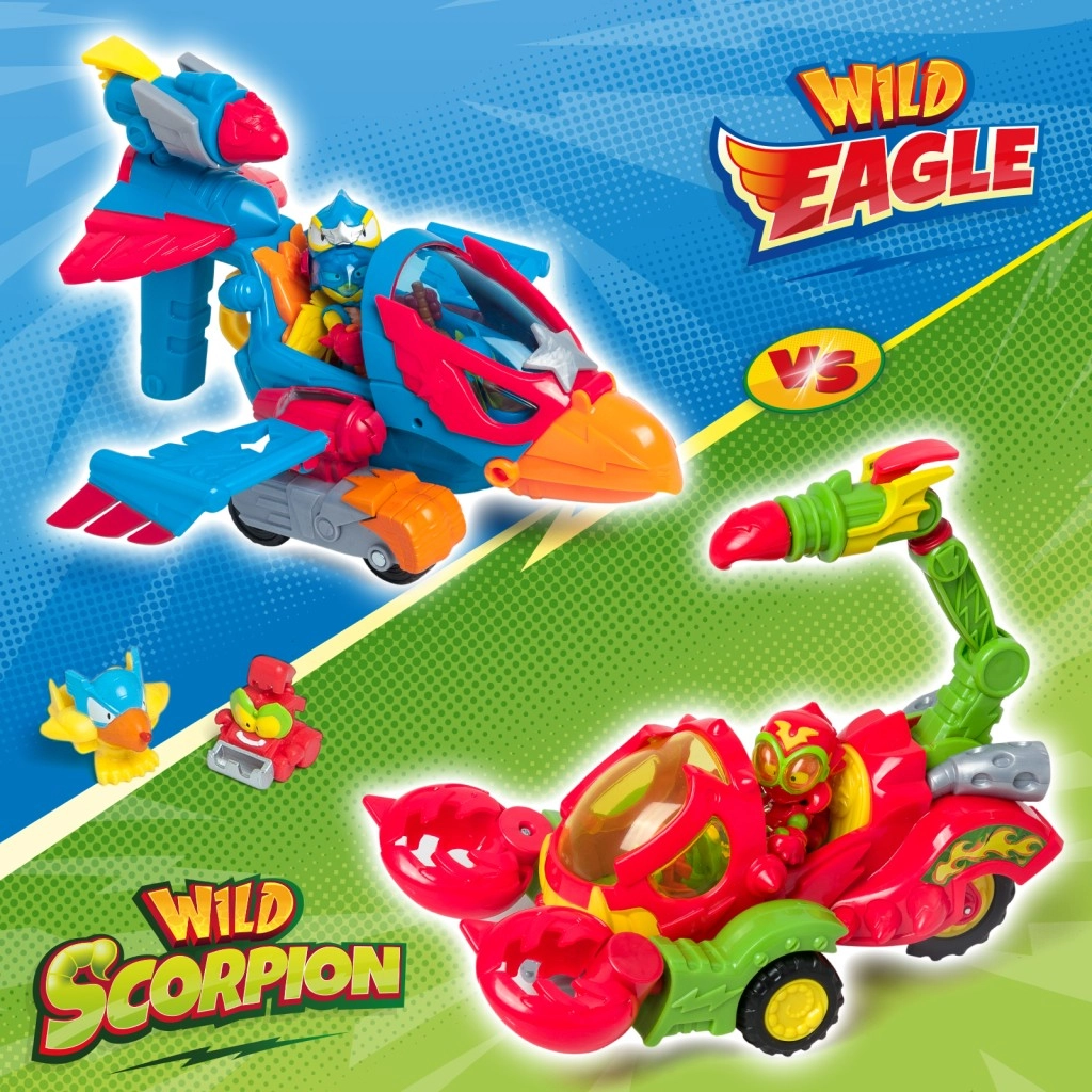 Kovokite ant žemės ir ore su lėktuvu Wild Eagle ir transporto priemone Wild Scorpion! Pasiruoškite pačiai laukiniausiai dvikovai su jų galingais gyvūniškais išpuoliais.