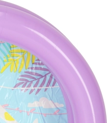 Pagamintas iš kokybiškos PVC medžiagos ir aprūpintas saugos vožtuvais, baseinas yra lengvas ir patogiai pernešamas. Du pripučiami žiedai prisideda prie stabilumo, o spalvingi raštai dugne suteikia linksmą nuotaiką kiekvienai vandens pramogai.