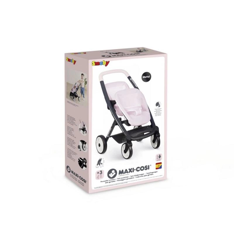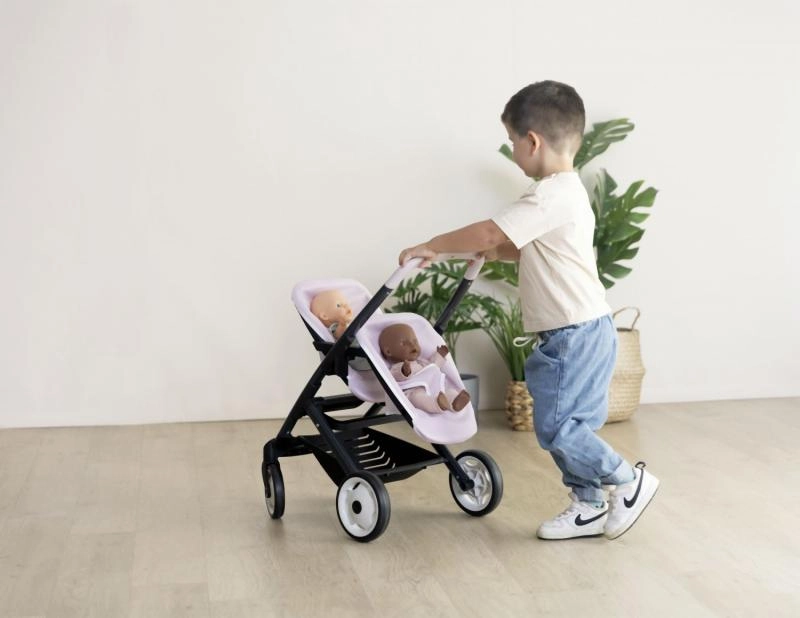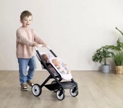 Sportinis dvynių lėlių vežimėlis iš Smoby prekės ženklo, nuostabaus Quinny dizaino. Šis modernus vežimėlis turi nuimamas sėdynes ir tylius ratukus, užtikrinančius patogų naudojimą.