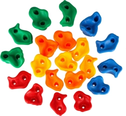 Spalvotų laikiklių rinkinys yra puiki žaidimų aikštelės alternatyva ir įkvepia aktyviam gyvenimo būdui. Turėdami nuosavą laipiojimo sieną, skatinsite ne tik vaikų fizinę raidą, bet ir jų kūrybiškumą bei judėjimo džiaugsmą.