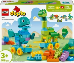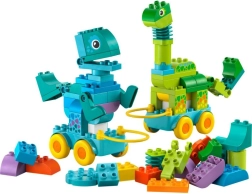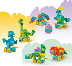 Šis rinkinys – ne tik kūrybai, bet ir žaismingam mokymuisi. LEGO DUPLO kaladėlės sukurtos taip, kad būtų lengva jas suimti ir dėlioti, todėl jos padeda ugdyti vaikų kantrybę ir susikaupimą. Rinkinyje taip pat yra pagrindas su ratukais, leidžiantis dinozaurus paversti riedančiais modeliais – tai suteiks dar daugiau pramogų visiems mažiesiems LEGO DUPLO transporto priemonių gerbėjams.