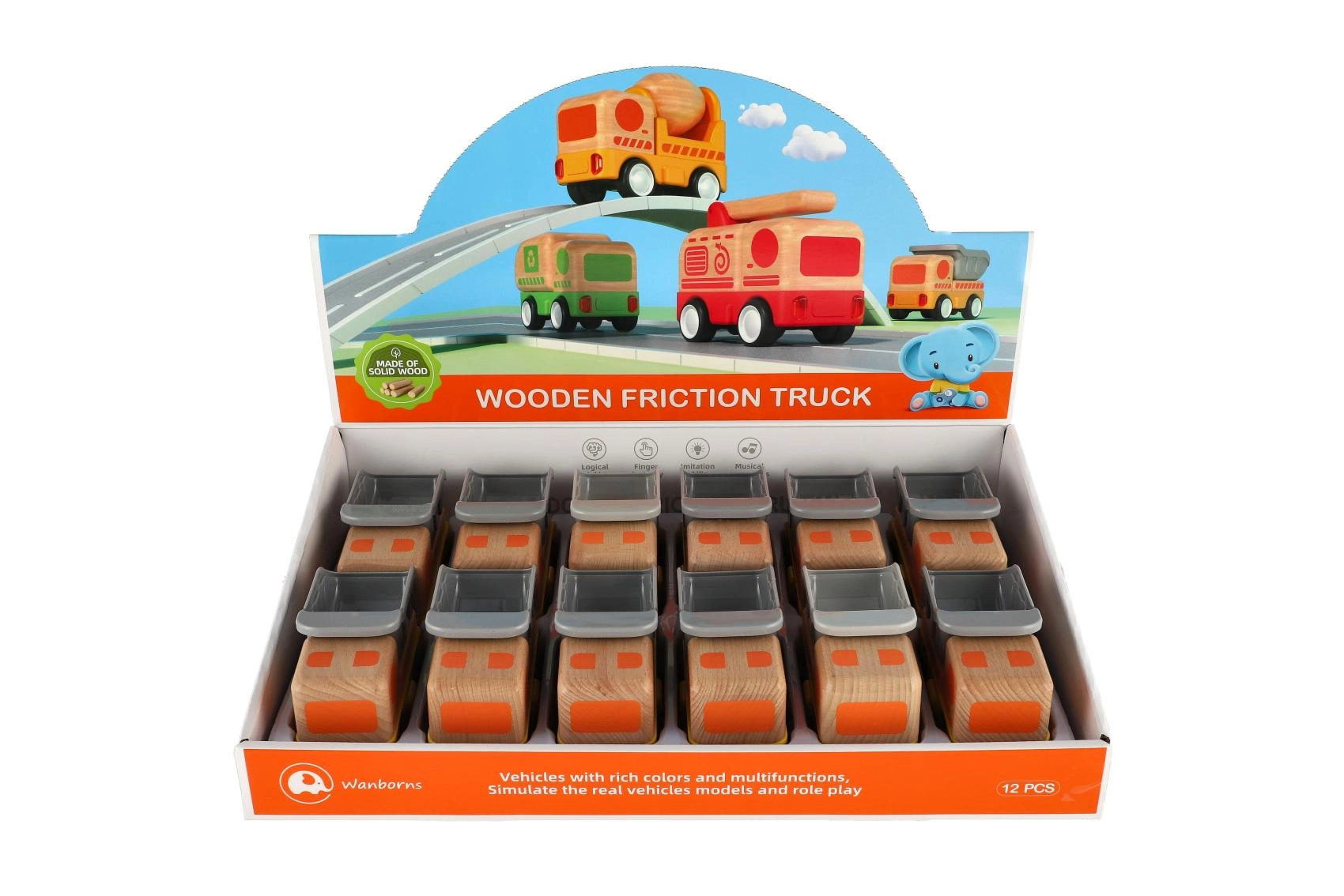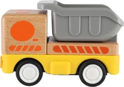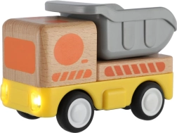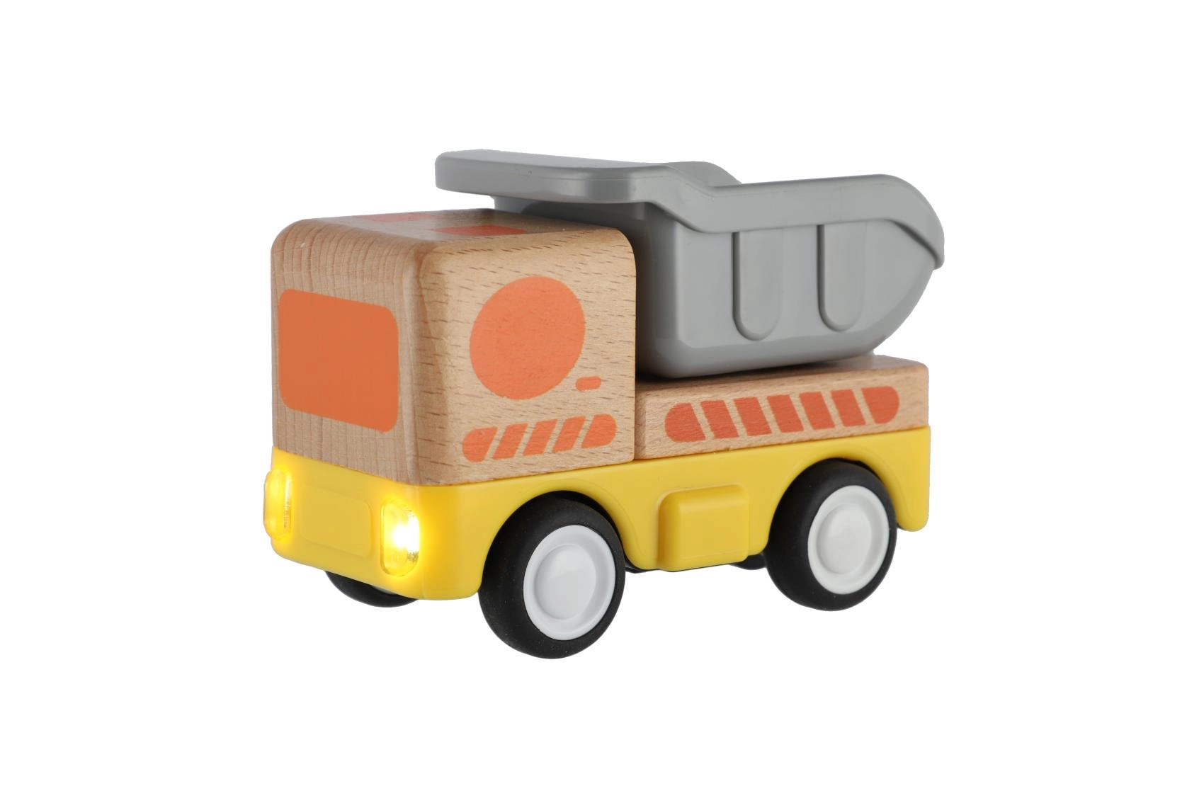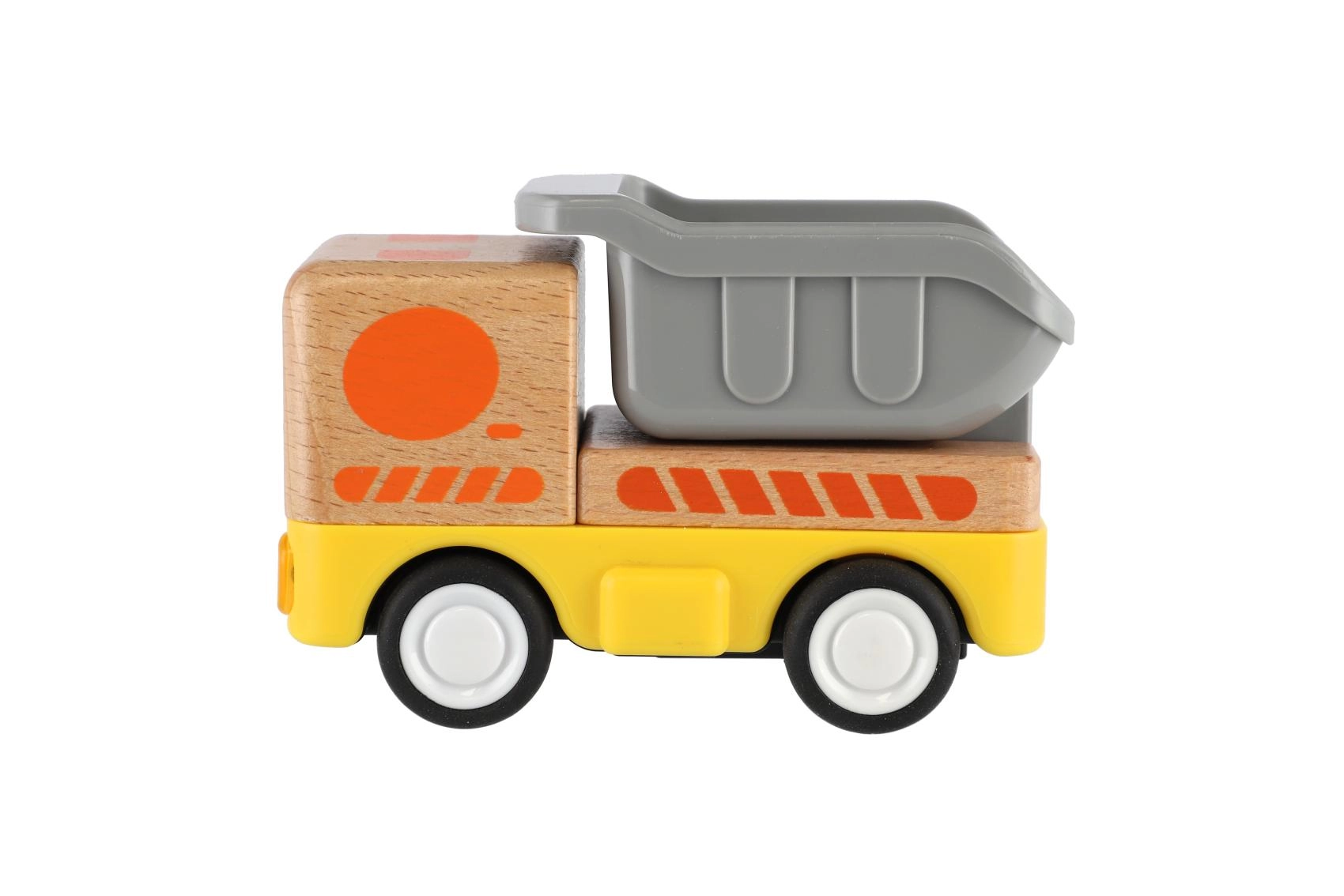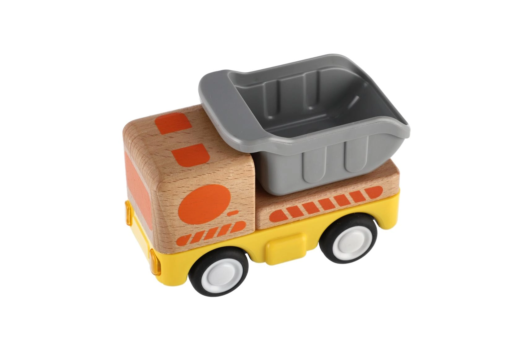 Tvirtas medinis sunkvežiukas su inercine pavara, kuris pradžiugins kiekvieną mažą vairuotoją! Inercinė pavara leidžia lengvai stumtelėti mašinėlę, kuri tada pati rieda į priekį. Idealu mažoms vaikų rankytėms.