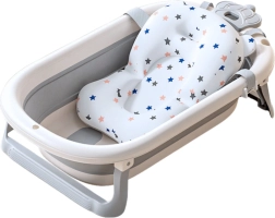 Vonia turi stabilų sulankstomą rėmą su neslystančiomis kojelėmis, kurios didina sukibimą ir apsaugo nuo nepageidaujamo slinkimo. Pagaminta iš saugių, netoksiškų PP ir TPE medžiagų, švelnių jautriai kūdikio odai ir atsparių pažeidimams. Rinkinyje yra minkštas maudymosi pagrindas, kuris palaiko kūdikį patogioje padėtyje, suteikia šilumos ir saugumo pojūtį.