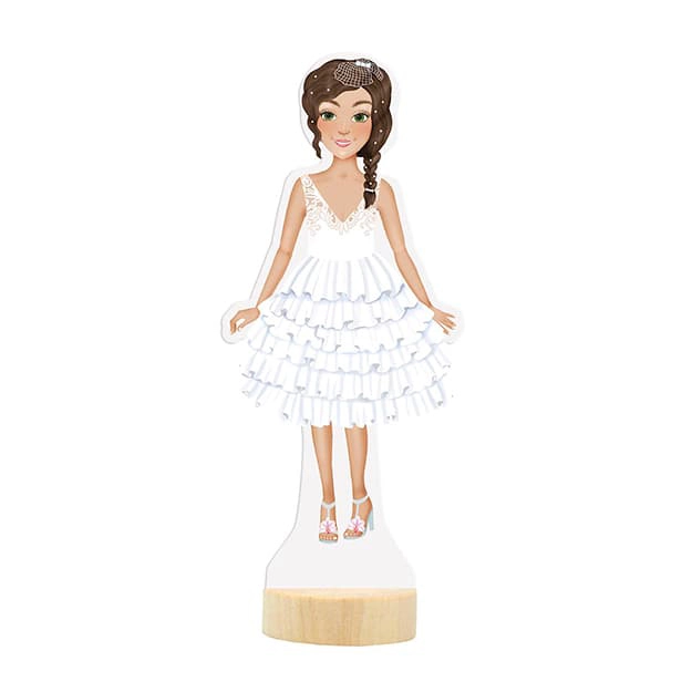 Magnetinė lėlė Vestuvės įneša smagumo ir kūrybiškumo į vaikų kambarį. Su šia lėle vaikai gali rengti savo personažą įvairiais drabužių deriniais, naudojant tris magnetinių drabužių, batų ir aksesuarų lapus.