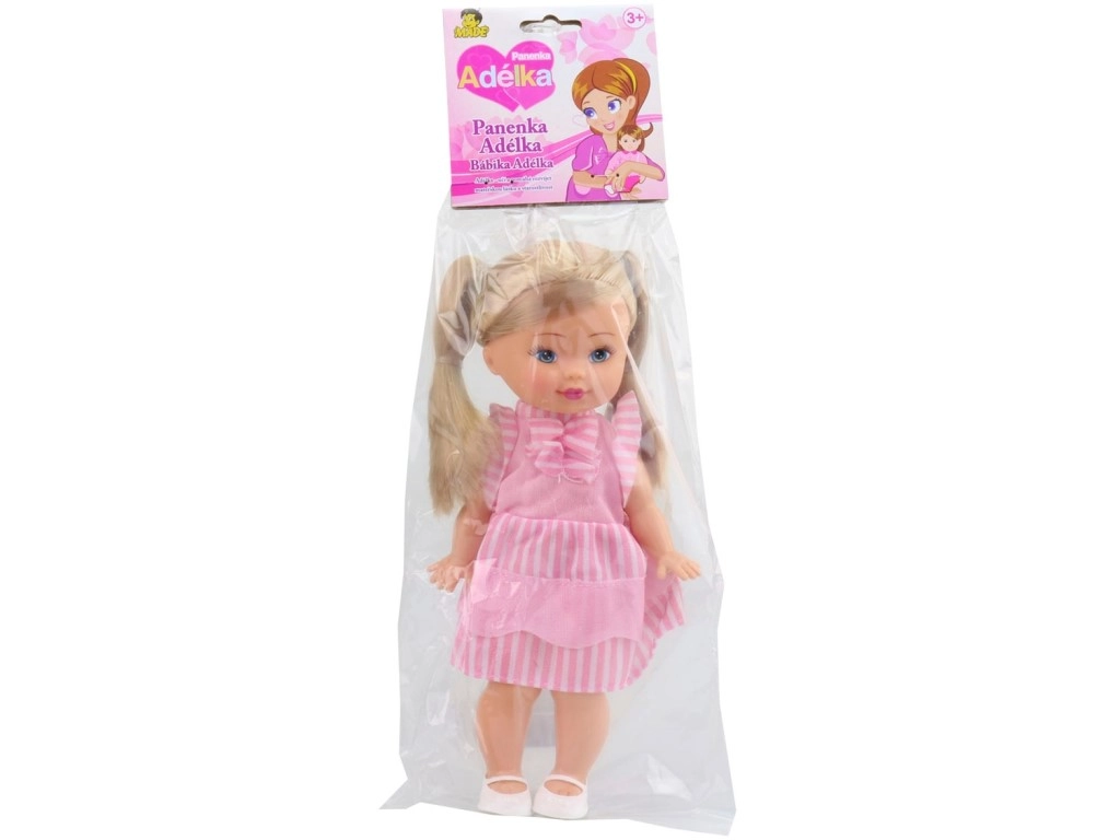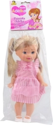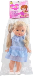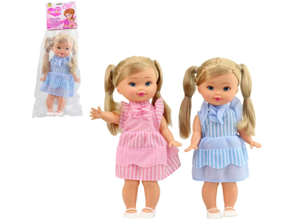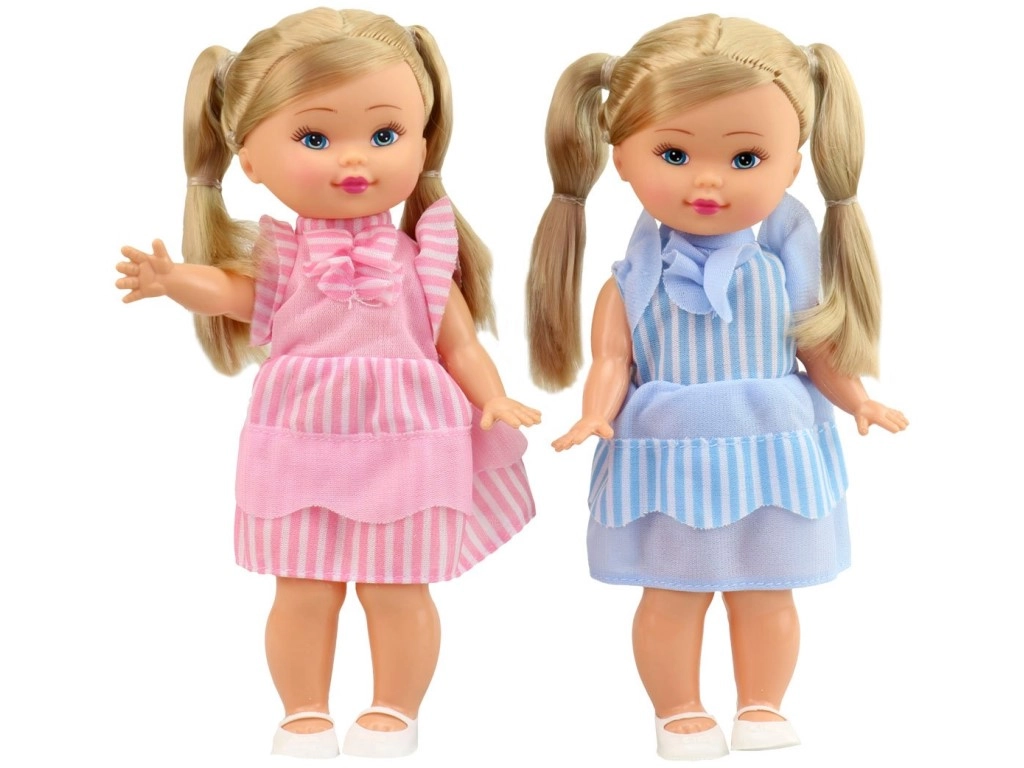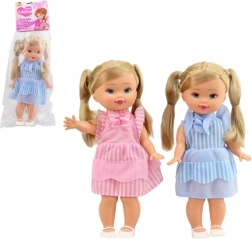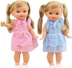 Žavinga lėlė su kasytėmis ir petnešomis yra ideali kiekvienai mažai mergaitei. Jos dryžuota apranga su puošmena tikrai sužavės kiekvieną vaiko širdį.