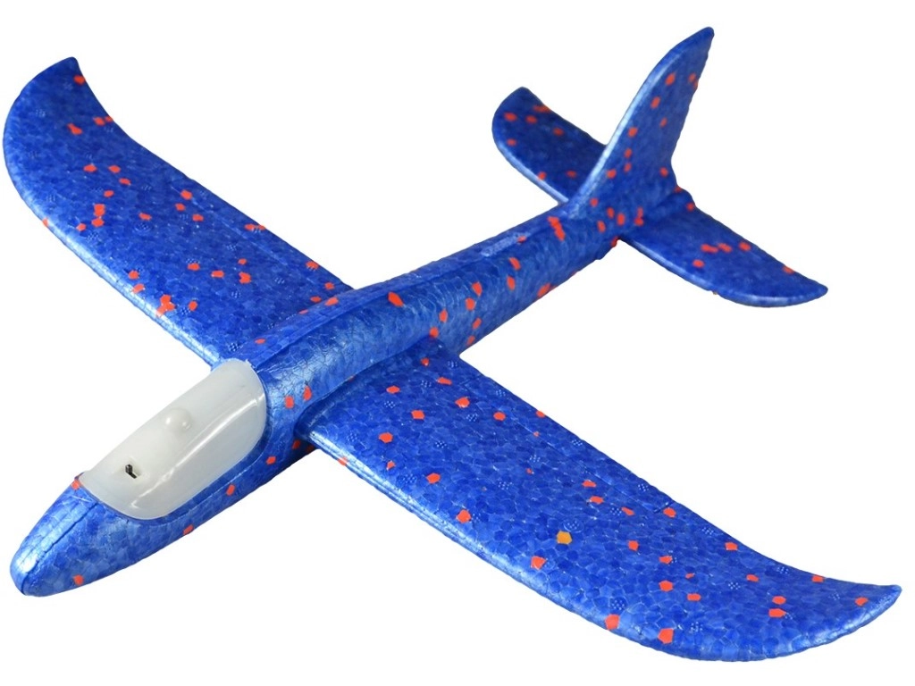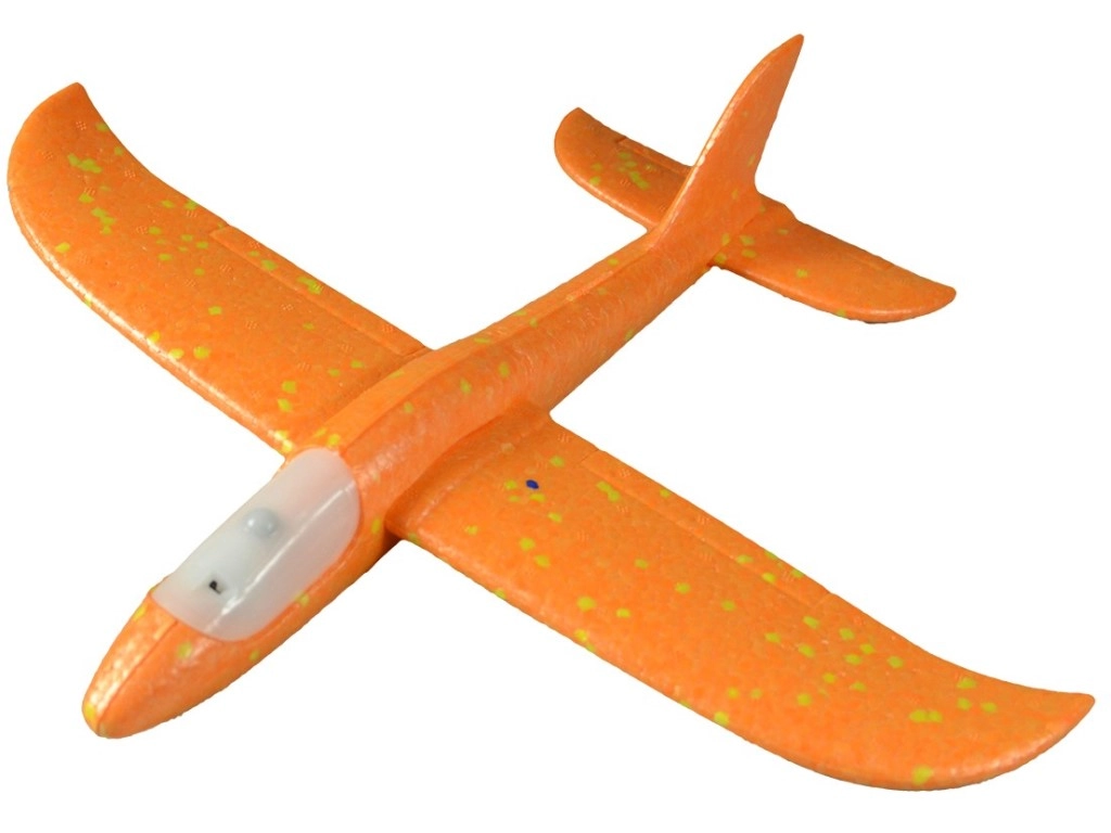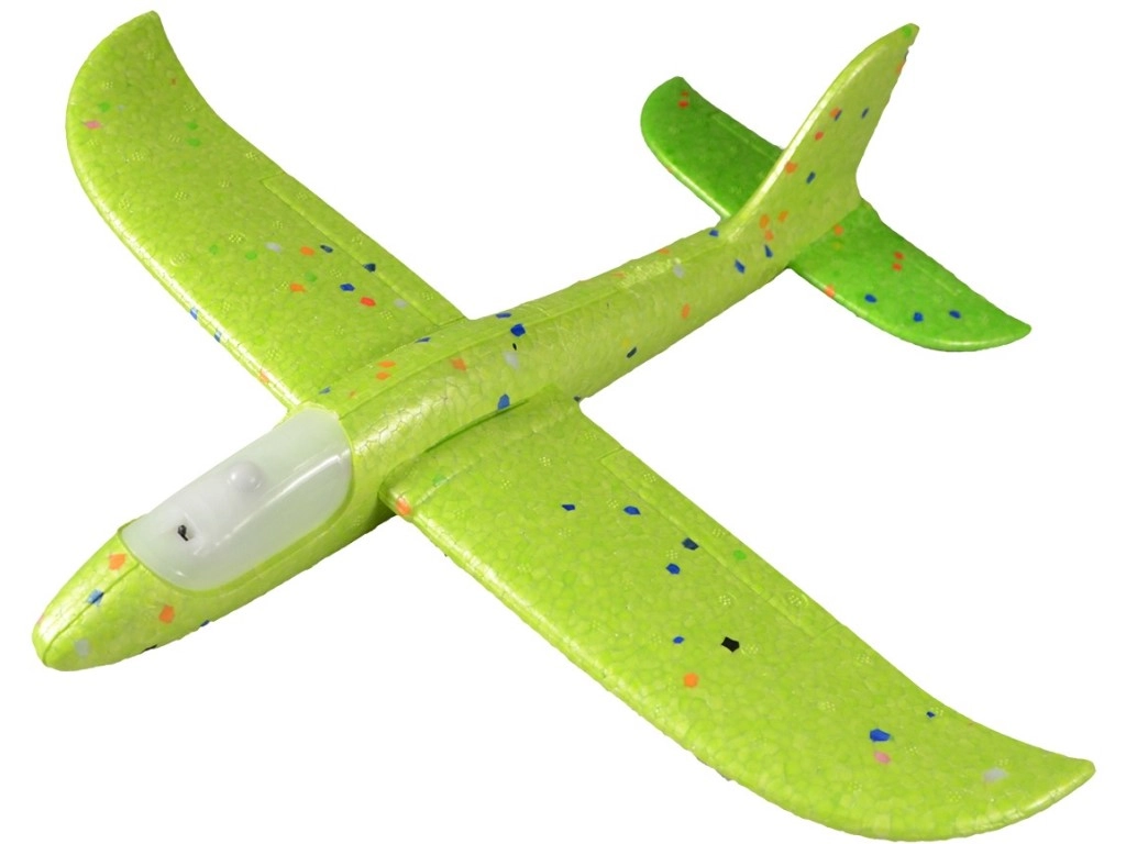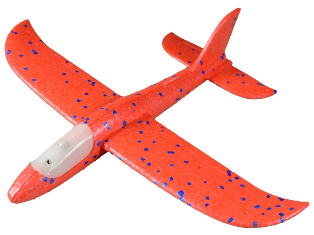 Mėtomas lėktuvas su LED šviesa – puikus žaidimas vaikams. 30 cm aukščio lėktuvas patogiai telpa į ranką, o paprastu mostu vaikai gali smagiai žaisti lauke ar patalpose.