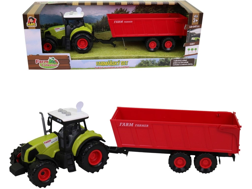 Traktorius su priekaba iš Farm Collection serijos yra tobuliausia dovana kiekvienam mažam berniukui. Dėl realistinių šviesų ir garsų jis suteiks puikių pramogų net žaidžiant gryname ore.