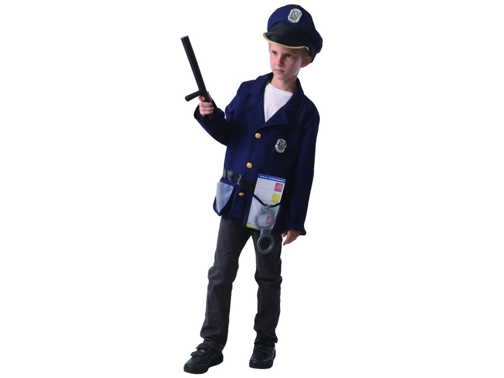 Aprenkite savo berniuką puikiu policininko kostiumu karnavalui! Šiame kostiume yra visi būtini aksesuarai: švarkas, kepurė, policijos pažymėjimas, lazda ir antrankiai, kad jūsų mažasis pareigūnas būtų pasiruošęs linksmybėms.