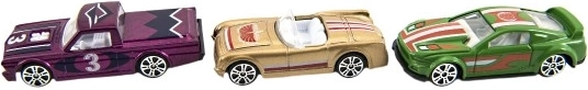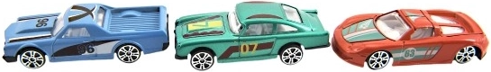Pakuotėje rasite įvairių tipų automobiliukų rinkinį, kuris leidžia be galo daug pramogų ir plečia kolekciją.