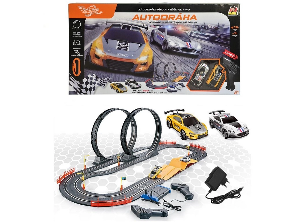 Pasiruoškite įtraukiantiems važiavimams su lenktynių trasa iš Racing Collection serijos. Šiame rinkinyje yra du lenktyniniai automobiliai ir viskas, ko reikia azartiškai kelionei, įskaitant du valdiklius, kilpas ir šuolių tiltą. Dėl paprasto naudojimo ir lengvo surinkimo tai idealus užsiėmimas visai šeimai.