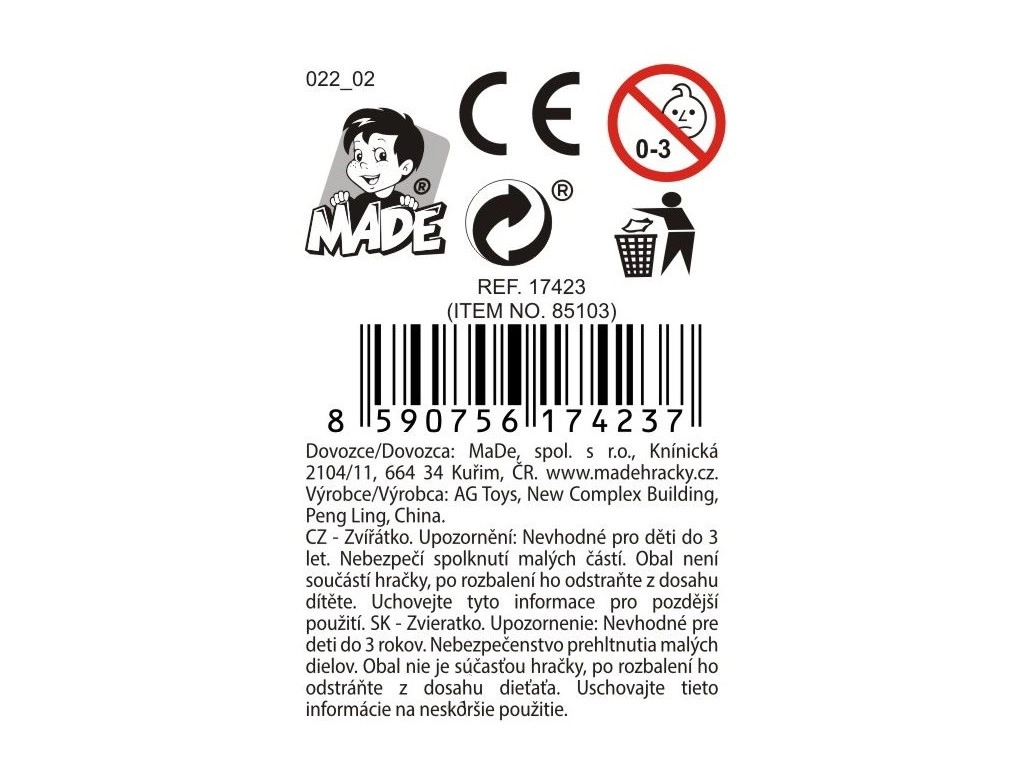 - Žaislo dydis 15 x 10,3 x 8,2 cm