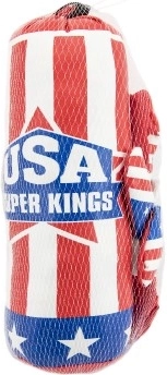 Šis vaikiškas bokso rinkinys yra puikus pasirinkimas pirmiesiems žingsniams bokso pasaulyje. Dėl mažesnių matmenų tinka vaikų kambariui ir treniruotėms namuose. Spalvingas Amerikos vėliavos motyvas patrauks vaikų dėmesį ir paskatins judėti.