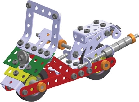 Konstruktoriuje esančios tvirtos metalinės dalys užtikrina ilgaamžį žaidimą ir universalumą statant. Surinkimo instrukcija yra lengvai suprantama ir skatina vaikus kūrybiškai atrasti naujus surinkimo būdus.