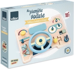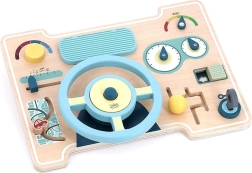 Dėl švelnių spalvų, saugios konstrukcijos ir pritaikyto dydžio šis medinis prietaisų skydelis yra puikus pasirinkimas pirmiesiems jūsų vaikų nuotykių žingsniams.