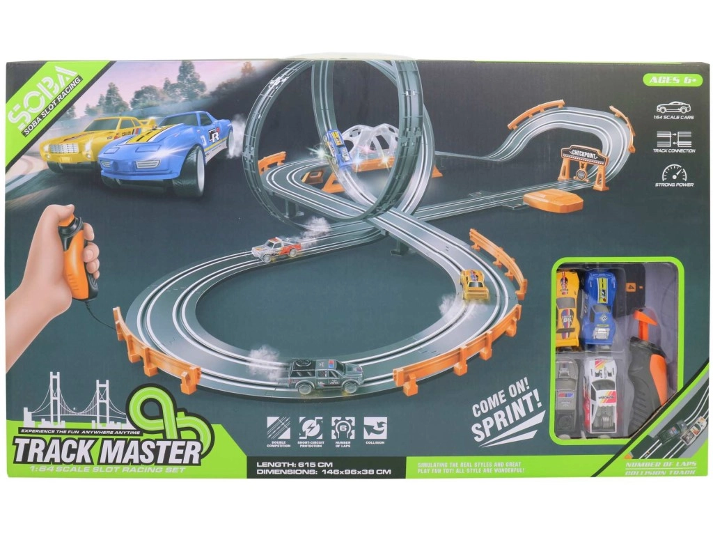 Automobilių trasa mažiesiems lenktynininkams, užtikrinanti valandas pramogų ir adrenalino kupinų lenktynių. Suteikia interaktyvią patirtį su realistiškais automobiliais ir 615 cm ilgio trasa.