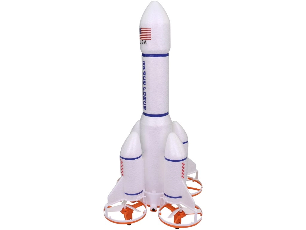 Šis unikalus raketos formos dronas aprūpintas 2,4 GHz nuotolinio valdymo sistema ir siūlo 2 greičio režimus. 33 cm aukščio įrenginys pagamintas iš kokybiško plastiko ir maitinamas akumuliatoriumi, kurį galima įkrauti per USB.