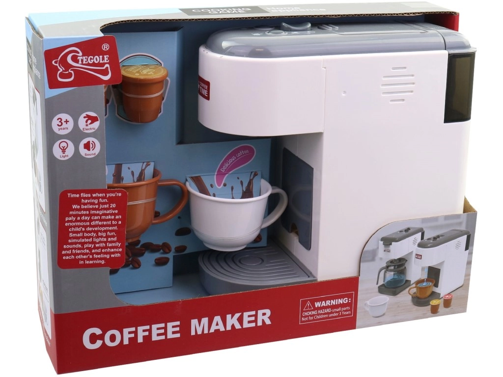 Realistiškas kavos aparatas yra ideali žaislas vaikams nuo 3 metų. Šis modernus kavos aparatas suteiks kiekvienai vaikiškai virtuvei realistišką išvaizdą ir pradžiugins mažuosius baristas.