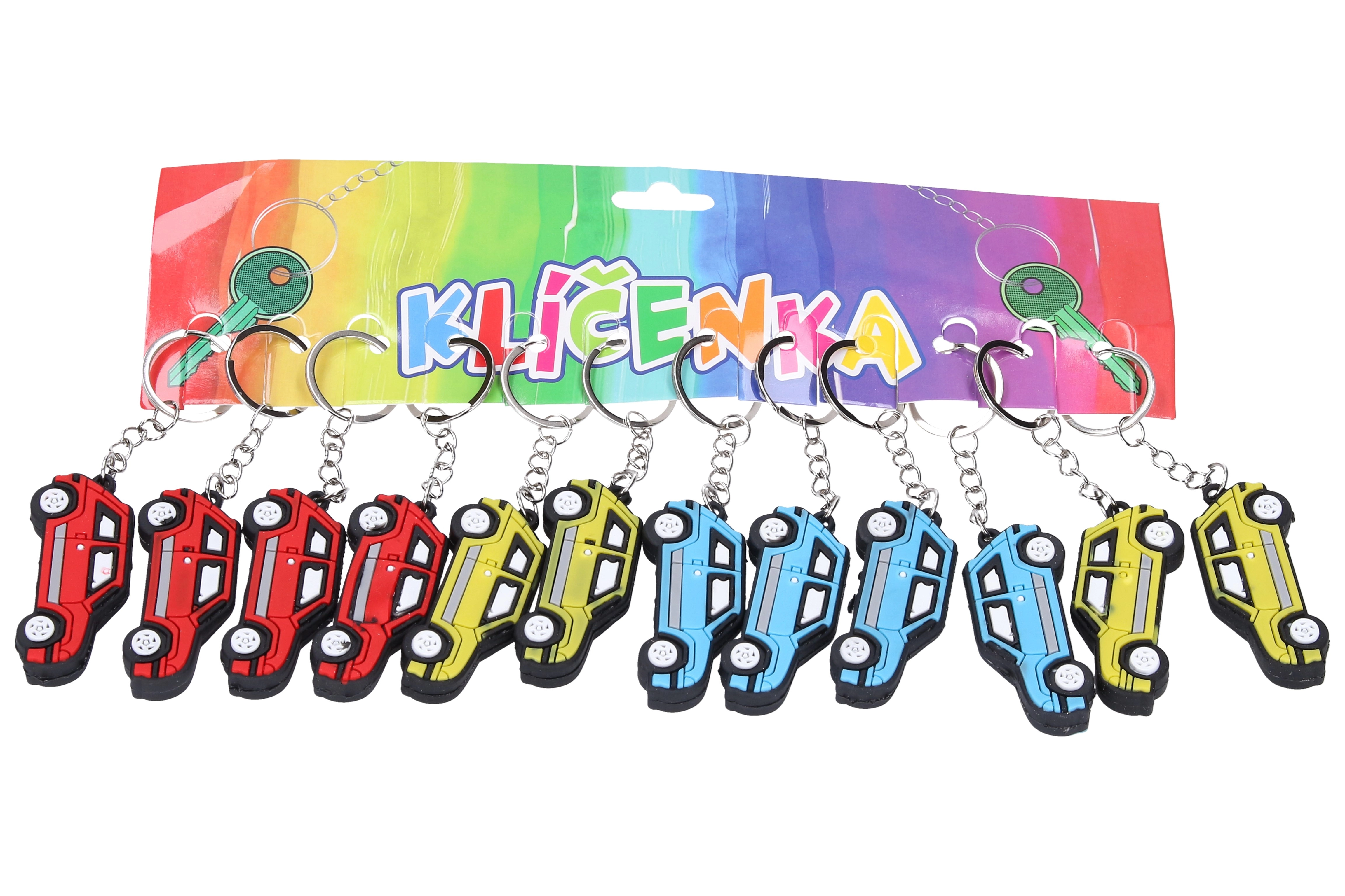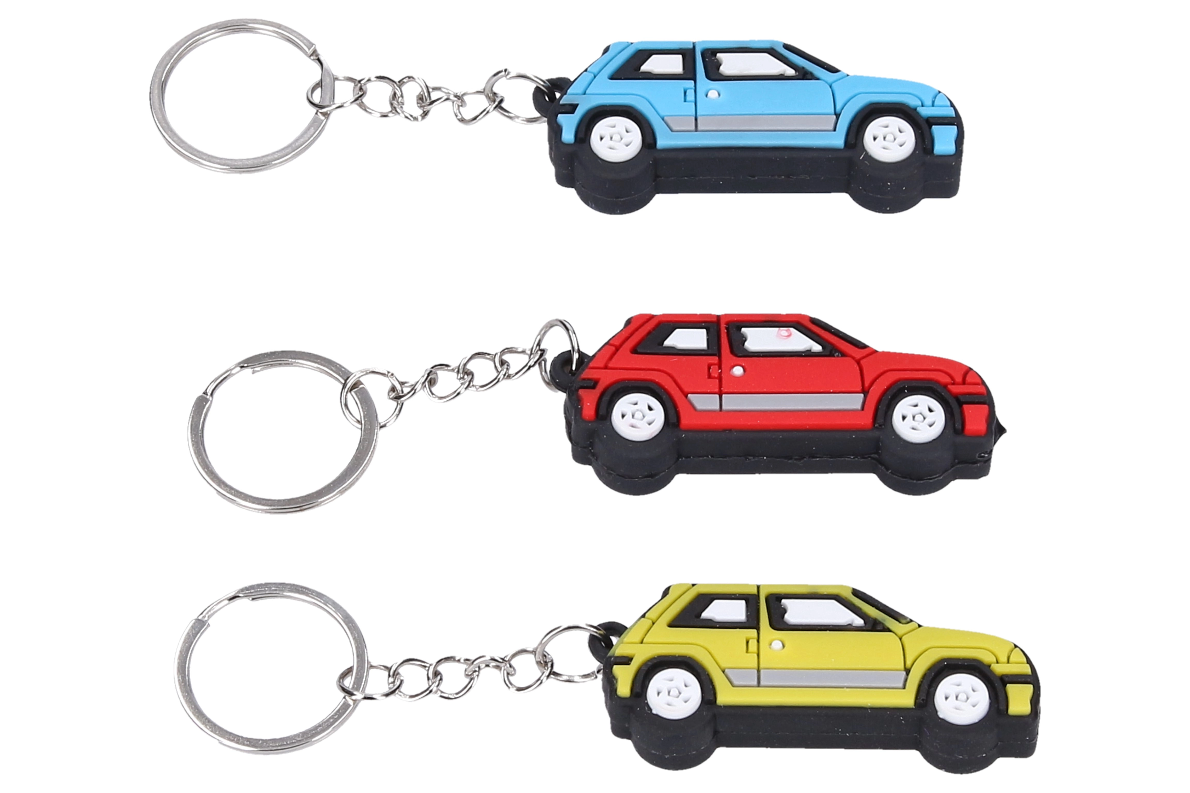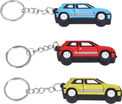 Stilingas automobilio formos raktų pakabukas, prieinamas trijose ryškiose spalvose: raudonoje, geltonoje ir mėlynoje.