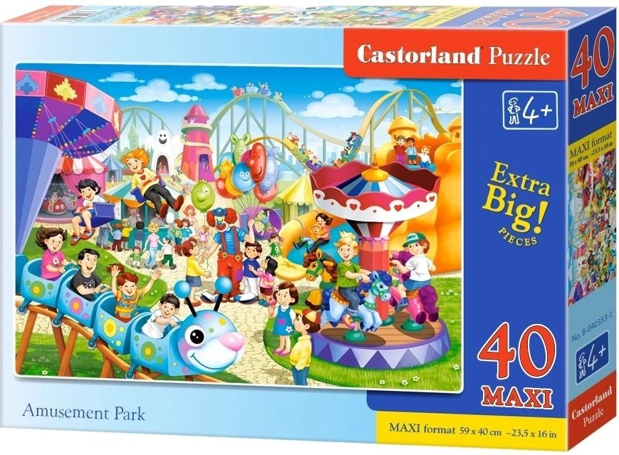 Dėlionė Pramogų parkas MAXI su 40 didelių detalių puikiai tinka mažesniems vaikams. Dėl didesnio atskirų detalių dydžio ją lengva dėlioti, todėl dažnai dėliojama tiesiai ant grindų.