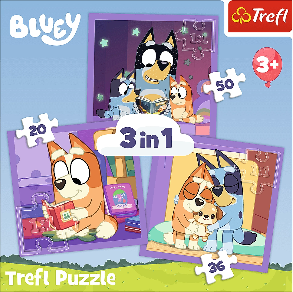 Atraskite dėliojimo magiją su TREFL „Susipažinkite su Bluey 3 viename“. Ši dėlionė siūlo: