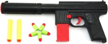 Vaikiškas pistoletas su putplasčio kulkomis, 30 cm