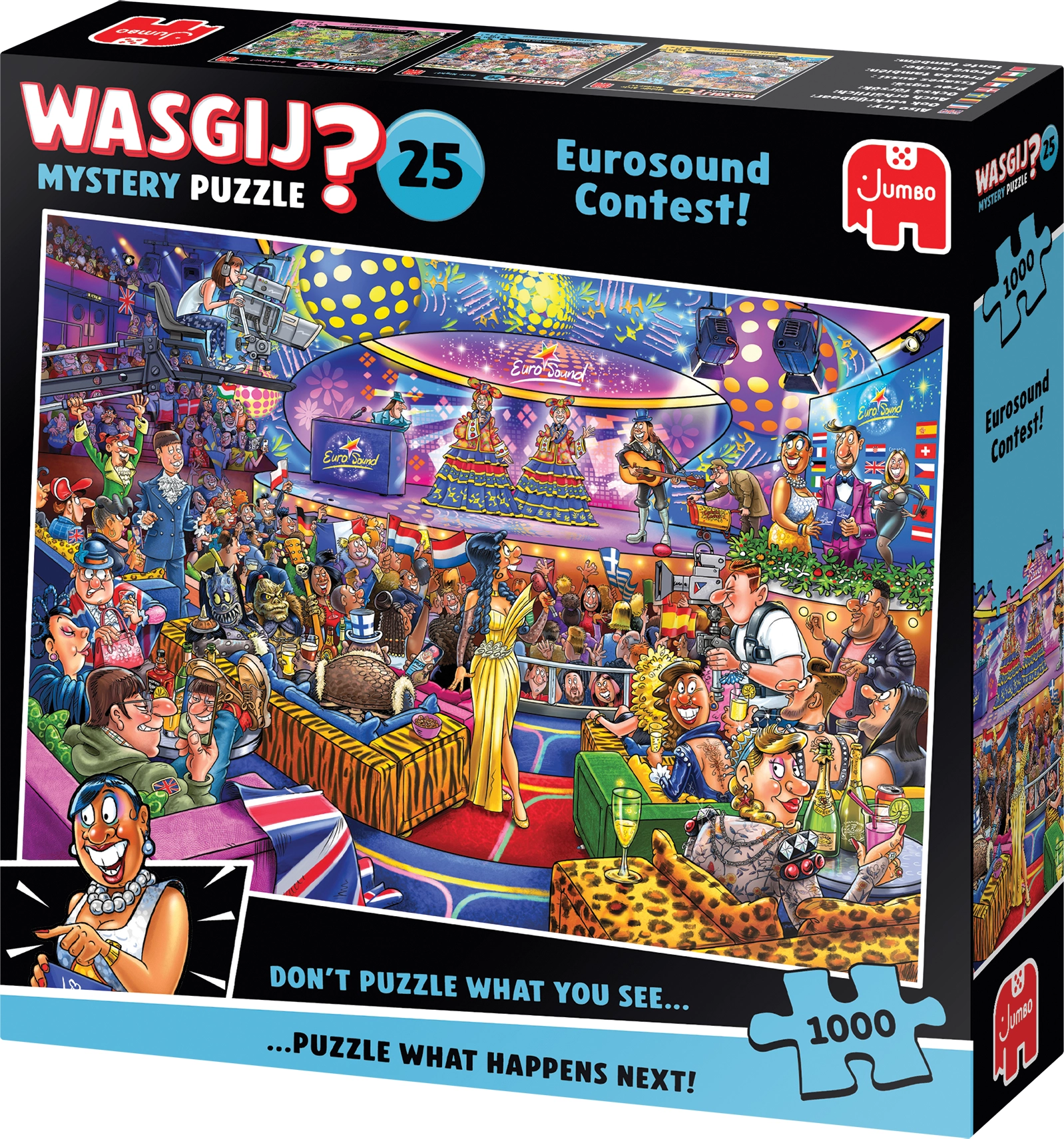 Puzzle Wasgij Mystery 25: Eurosound konkursas nėra įprasta dėlionė. Wasgij serija keičia taisykles, nes nepateikia tradicinio paveikslo, kurį reikėtų sudėti. Vietoj to turite pasitelkti savo vaizduotę ir užuominas, kad išsiaiškintumėte, kokį vaizdą dėliosite. Tai pati mįslė, todėl dėlioti dar smagiau ir įtraukliau.