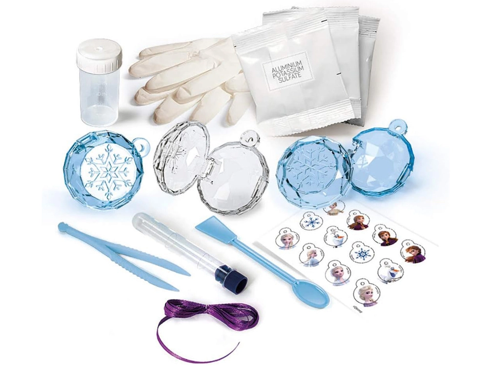 Crystal Jewels Frozen II iš Clementoni sujungia eksperimentinį rinkinį su rankų darbo bižuterijos kūrimu. Jis leidžia jums išauginti spalvotus kristalus, kuriuos galima įdėti į skaidrius medalionus kaip nepakartojamą puošmeną. Šis kūrybinis rinkinys idealiai tinka drąsiems ir smalsiems vaikams, kurie nebijo išreikšti savo asmenybės. Puikus būdas sudominti ir skatinti kūrybiškumą!