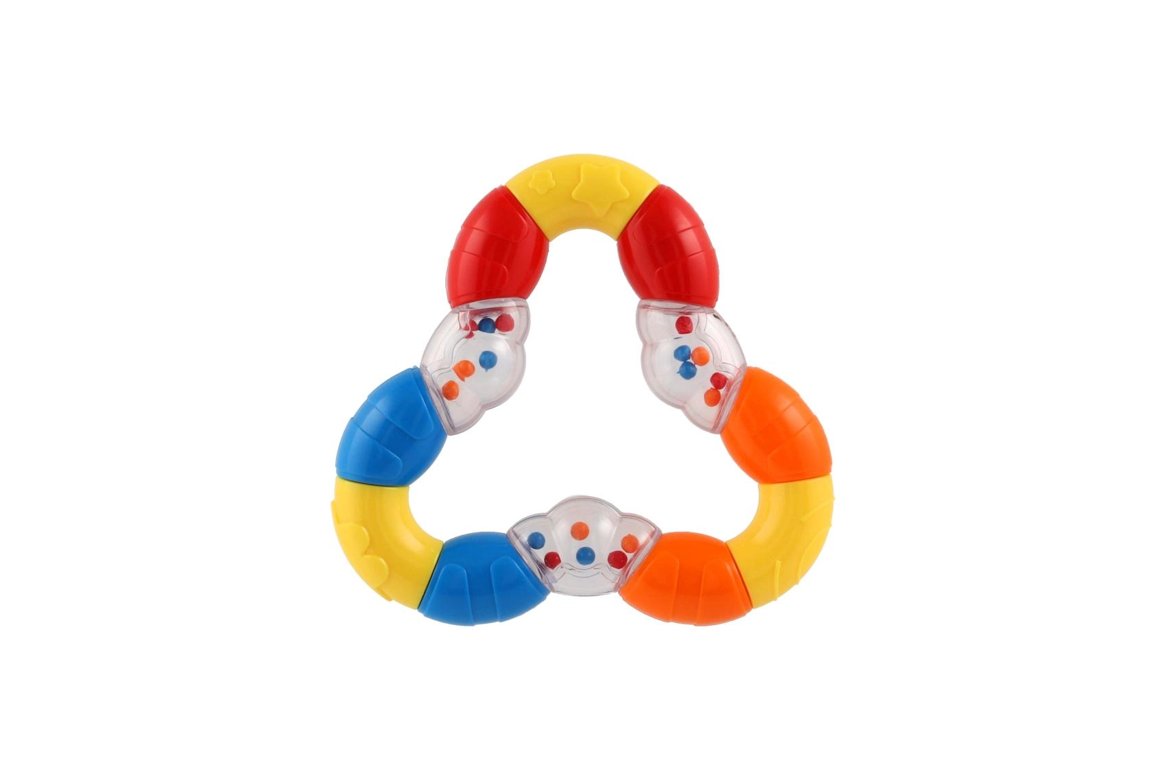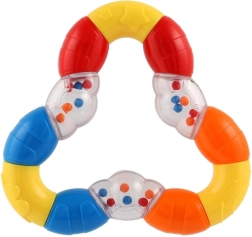 Šis daugiafunkcis trikampio formos barškutis ir kramtukas sukurtas specialiai patiems mažiausiems. Dėl lankstaus plastiko jį lengva sugriebti net mažoms rankytėms, o malonus paviršius kramtymui padeda nuraminti dantenas. Švelnus barškėjimas tuo pačiu skatina klausinę (girdimųjų pojūčių) raidą ir patraukia vaiko dėmesį.
