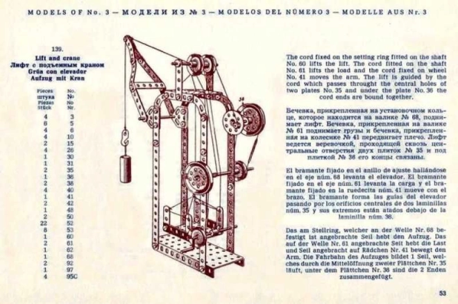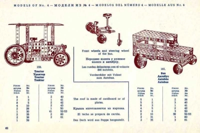 Rinkinyje yra didelė, 94 puslapių instrukcijų knygelė 4‑ojo dešimtmečio stiliumi, skirta rinkiniams MERKUR Classic C03, C04 ir C05. Galėsite surinkti iki 141 skirtingo modelio – nuo transporto priemonių ir mechanizmų iki techninių įrenginių. Ideali dovana kūrybingiems vaikams nuo 8 metų, technikos entuziastams ir retro dizaino gerbėjams.