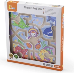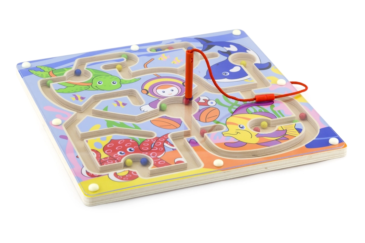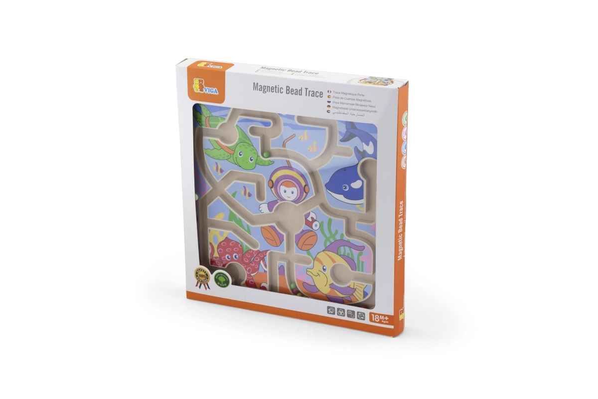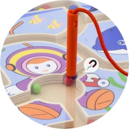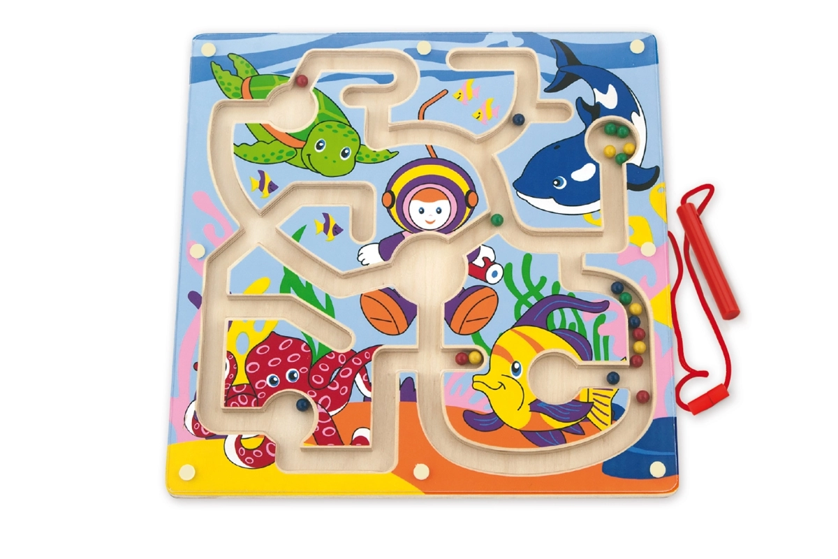 Suteikite vaikams išmanų žaidimą su mediniu magnetiniu labirintu, kuris natūraliai ir žaismingai lavina jų įgūdžius. Naudodami magnetinę lazdelę vaikai veda spalvotus kamuoliukus vingiuotais takeliais, treniruoja suėmimą, susikaupimą ir akių–rankų koordinaciją. Dėl saugiai uždarytos konstrukcijos kamuoliukai nepasimes, o žaidimas puikiai tinka ir kelionėms.