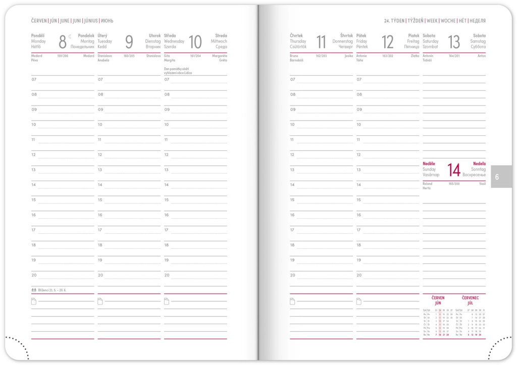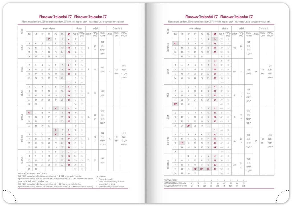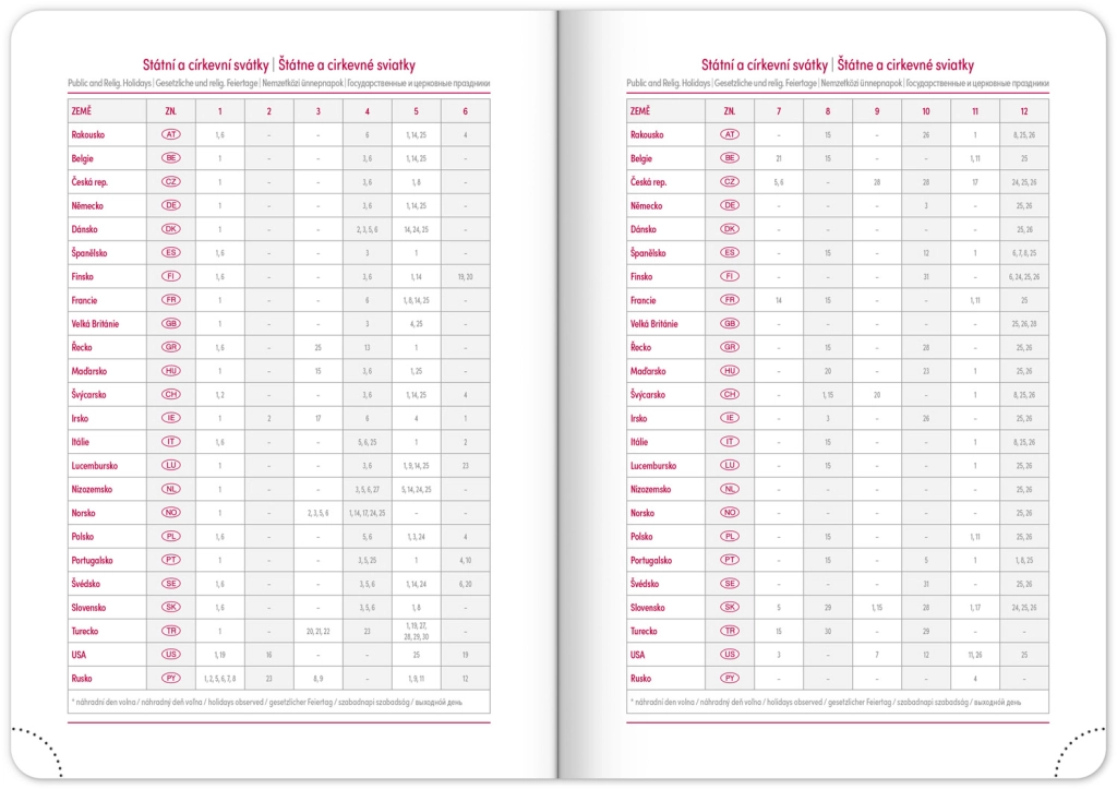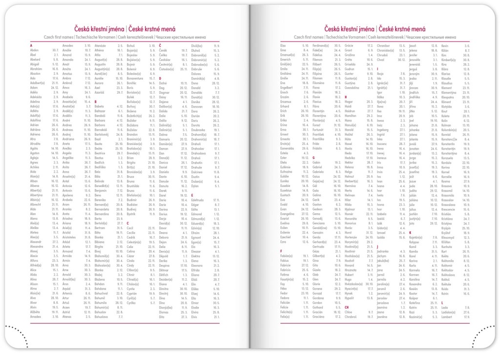 - Čekų–slovakų kalendorius, papildomai anglų, vokiečių, vengrų ir rusų kalbos