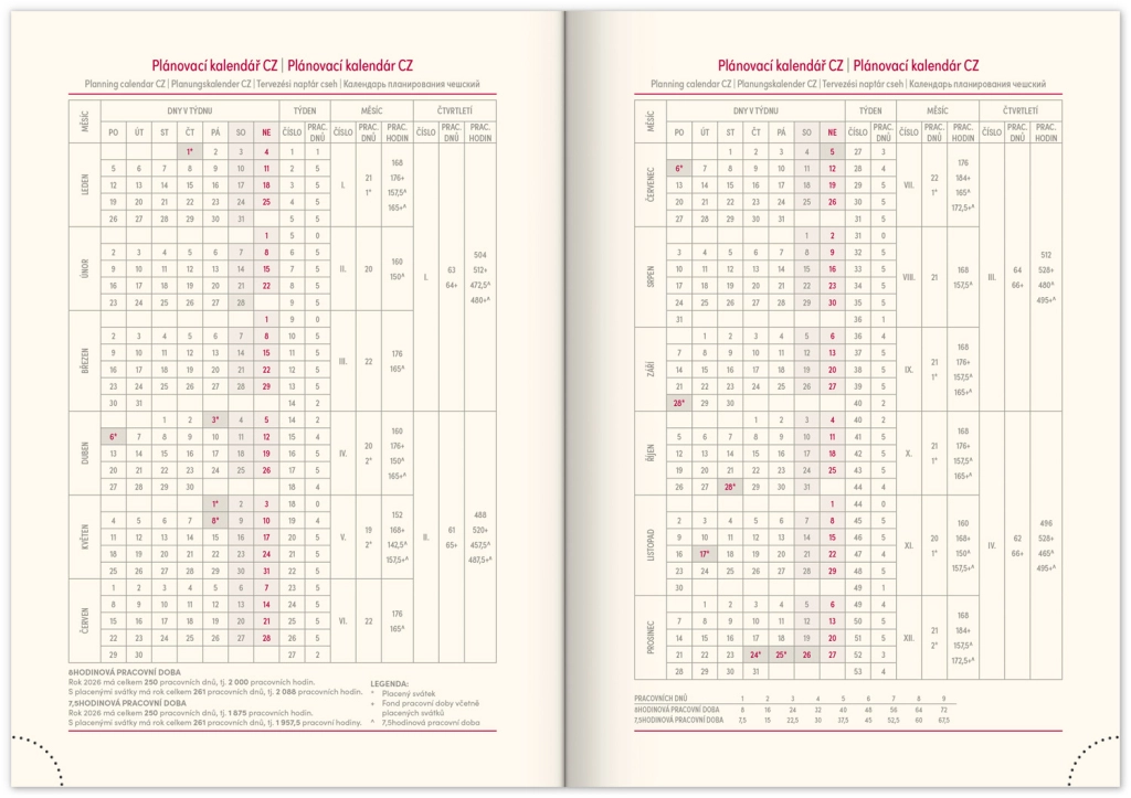 - Čekų–slovakų kalendorius su papildomomis kalbomis