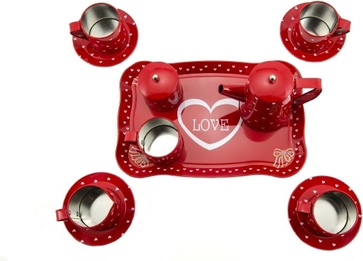 Pristatome raudoną skardinį arbatos servizą, kuris sužavės kiekvieną arbatos mėgėją. Šis 14 dalių rinkinys sukurtas atsižvelgiant į vaikų saugumą ir pramogą nuo 3 metų. Jis pagamintas iš skardos, kuri suteikia patvarumą ir atsparumą korozijai.