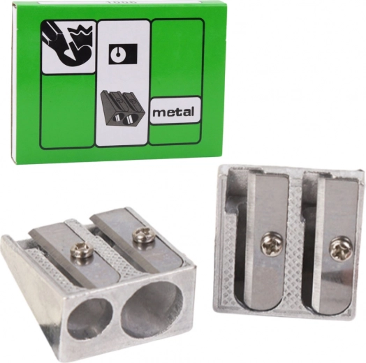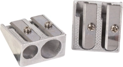 Tvirtas metalinis dvigubas drožtukas, idealiai tinkantis naudoti mokykloje ir biure. Dėl dvigubos angos galite drožti tiek plonas, tiek storesnes pieštukines kreideles ir pieštukus.
